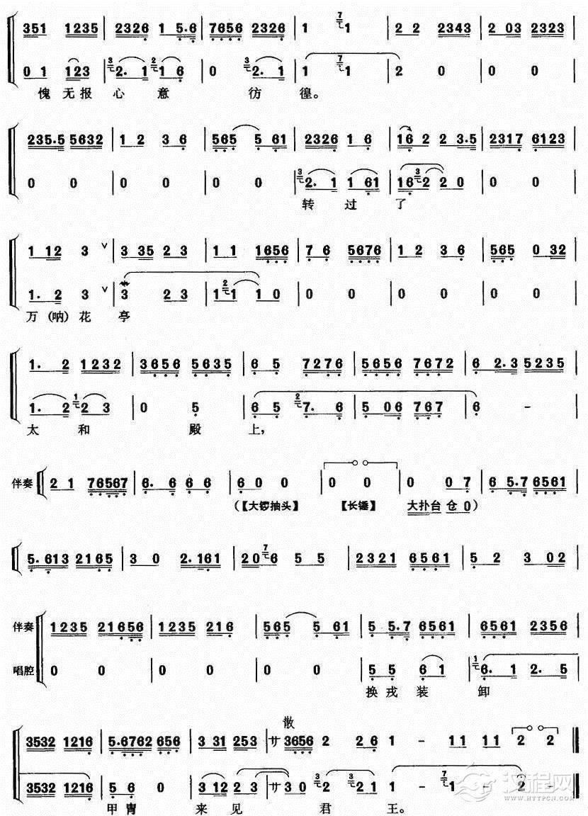 戏曲曲谱金钟响玉磐鸣王登九重(《上天台》刘秀唱段)