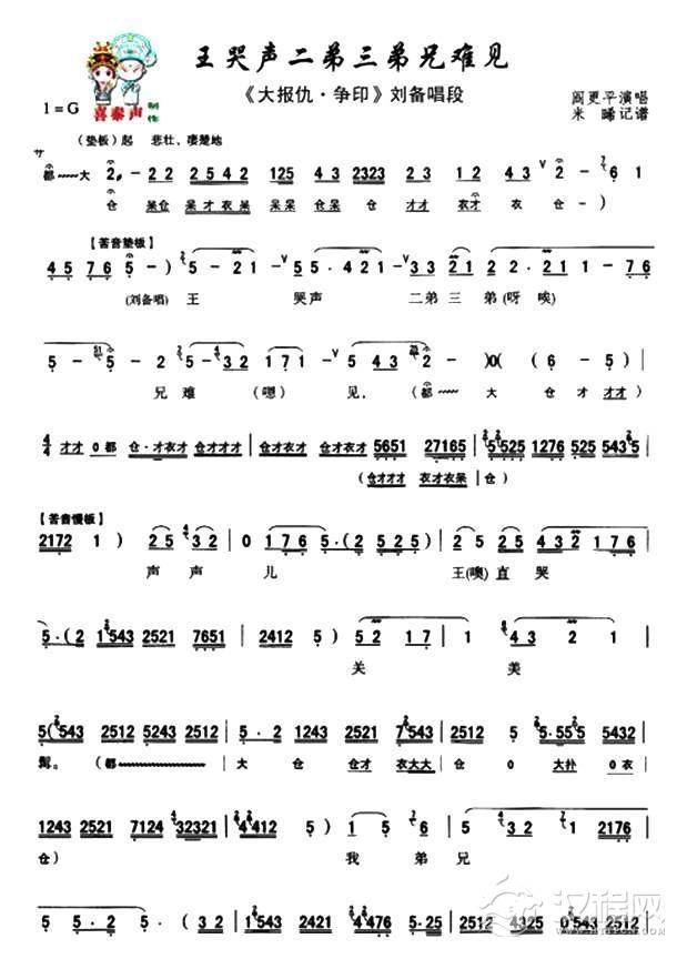 戏曲曲谱老天爷下鹅毛如下钢刀(《张广达上寿》张广达、陈氏唱段)