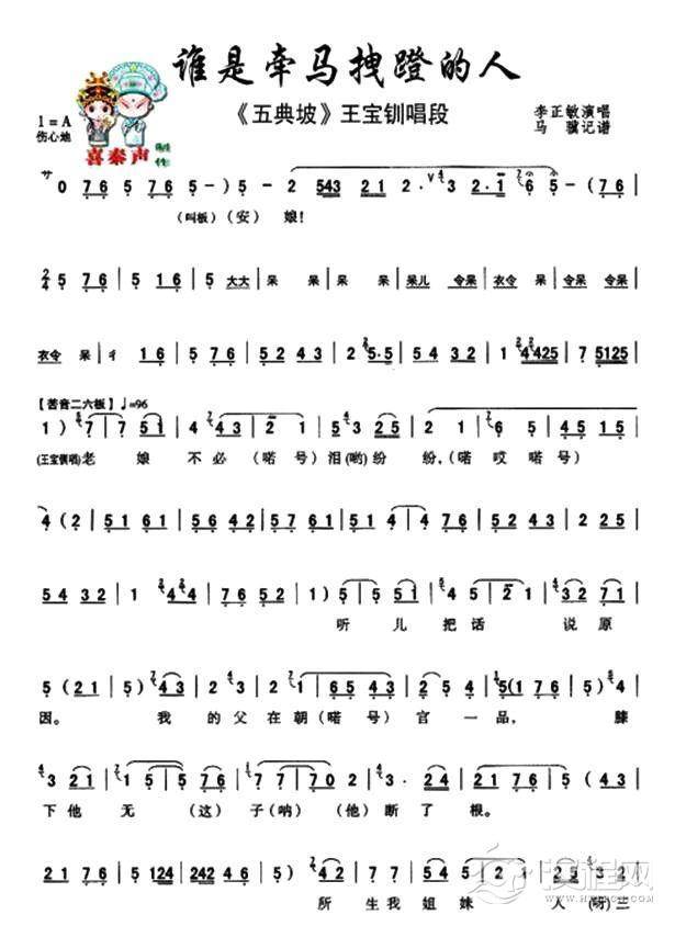 戏曲曲谱[秦腔]老娘亲不必泪纷纷(《探窑》王宝钏唱段)