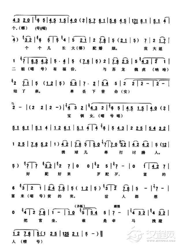 戏曲曲谱丫环调(《韩湘子》丫环唱段)