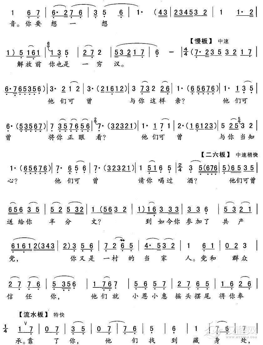 戏曲曲谱从东庄到西庄我到处把您找(《夺印》烂菜花唱段)