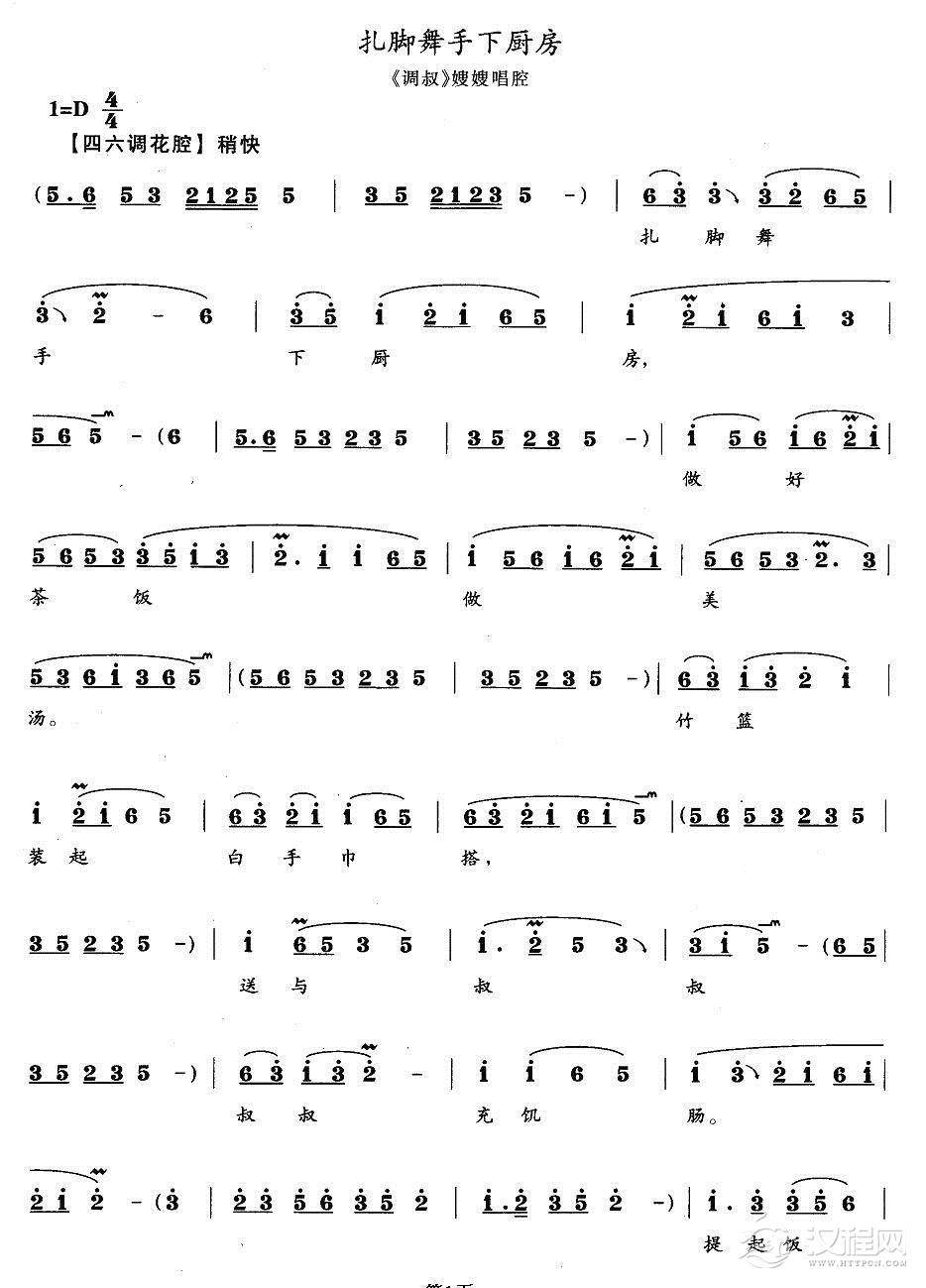 戏曲曲谱荷花出水放光彩(《牛多喜坐轿》杜鹃唱段)