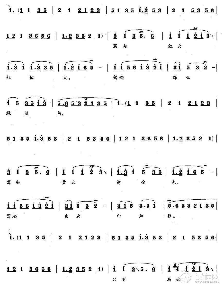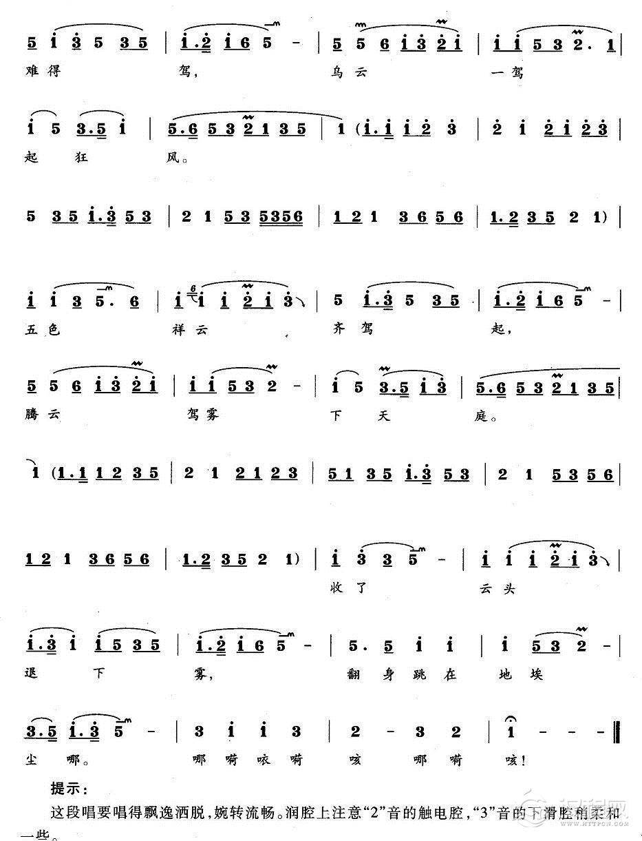 戏曲曲谱乱云飞(《杜鹃山》柯湘唱段)