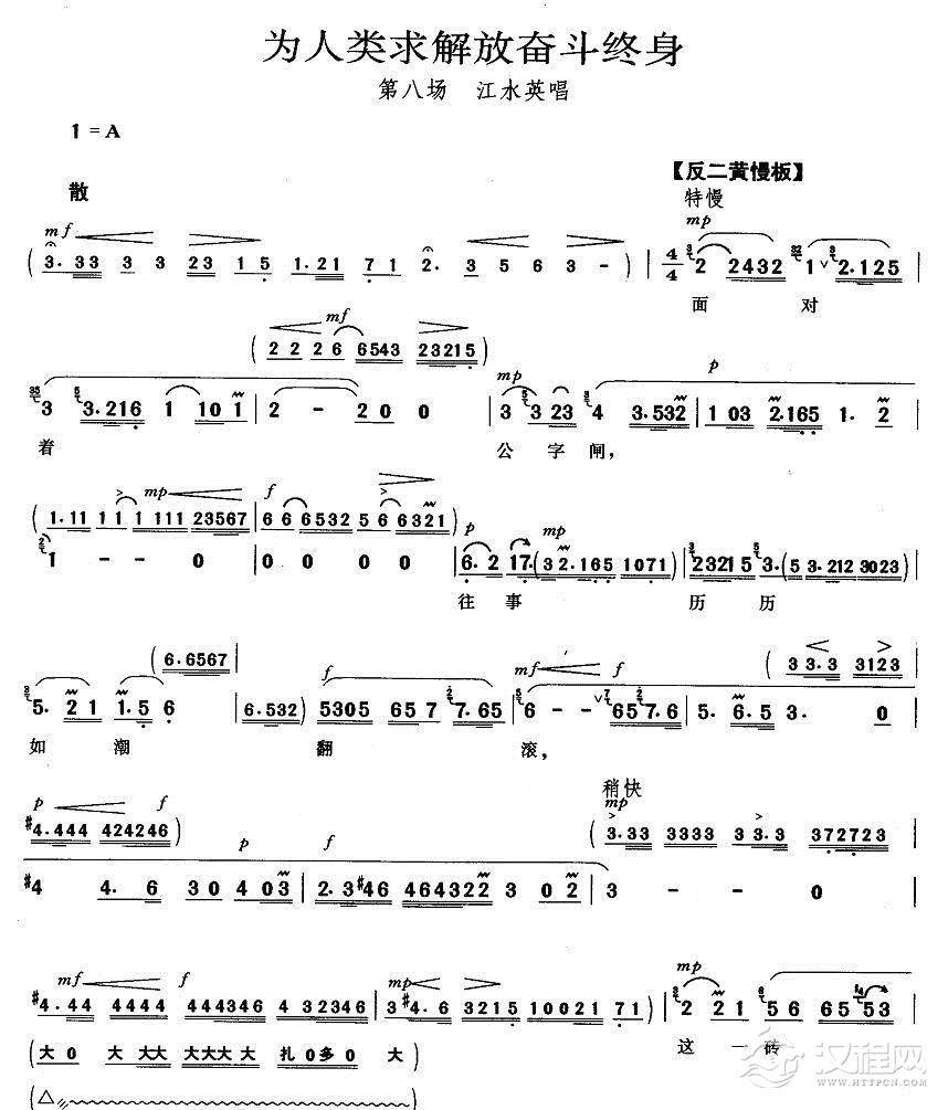 戏曲曲谱血的教训(《杜鹃山》柯湘唱段)