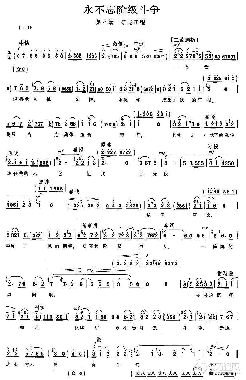 戏曲曲谱坚决战斗在海港(《海港》韩小强唱段)