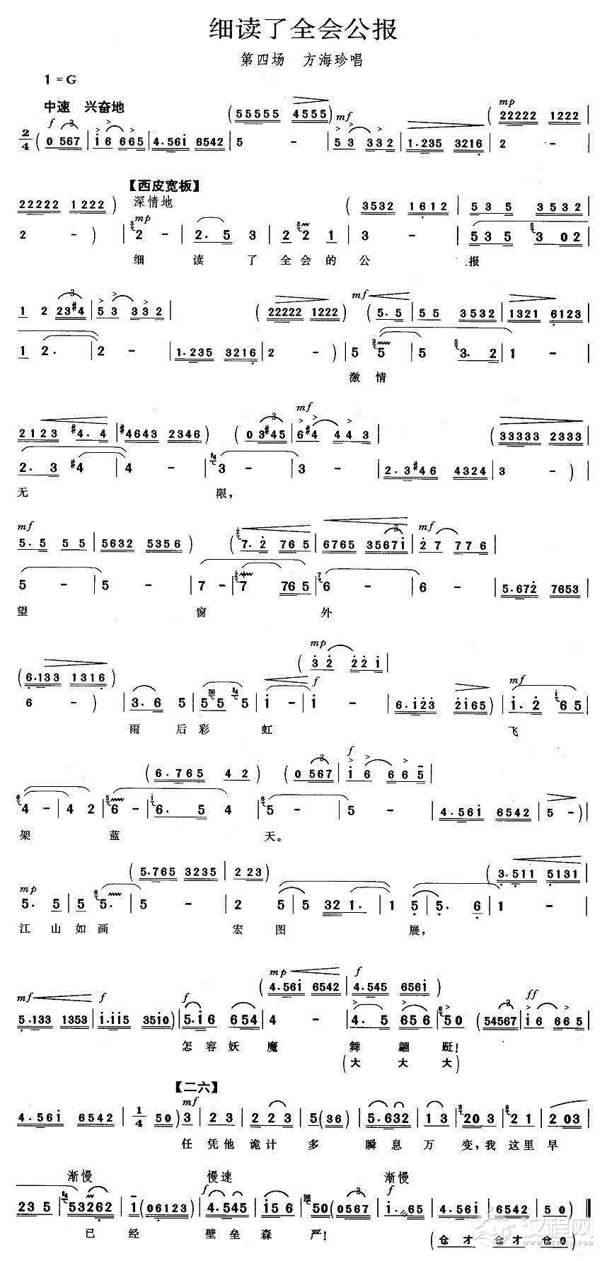 戏曲曲谱想起党眼明心亮(《海港》方海珍唱段)