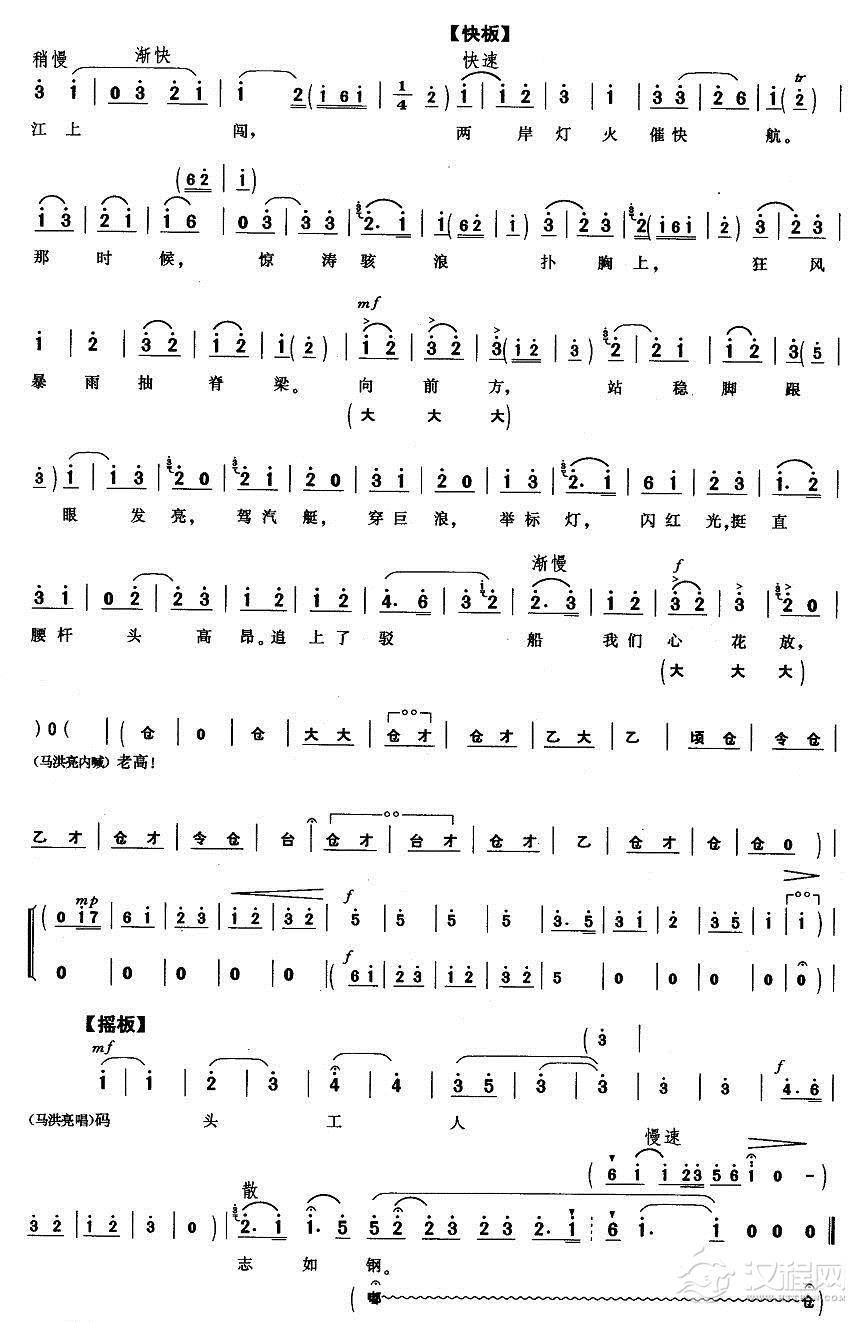 戏曲曲谱一石激起千层浪(《海港》高志扬唱段)