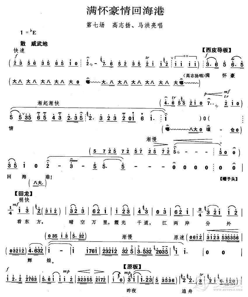 戏曲曲谱毛泽东思想东风传送(《海港》方海珍唱段)