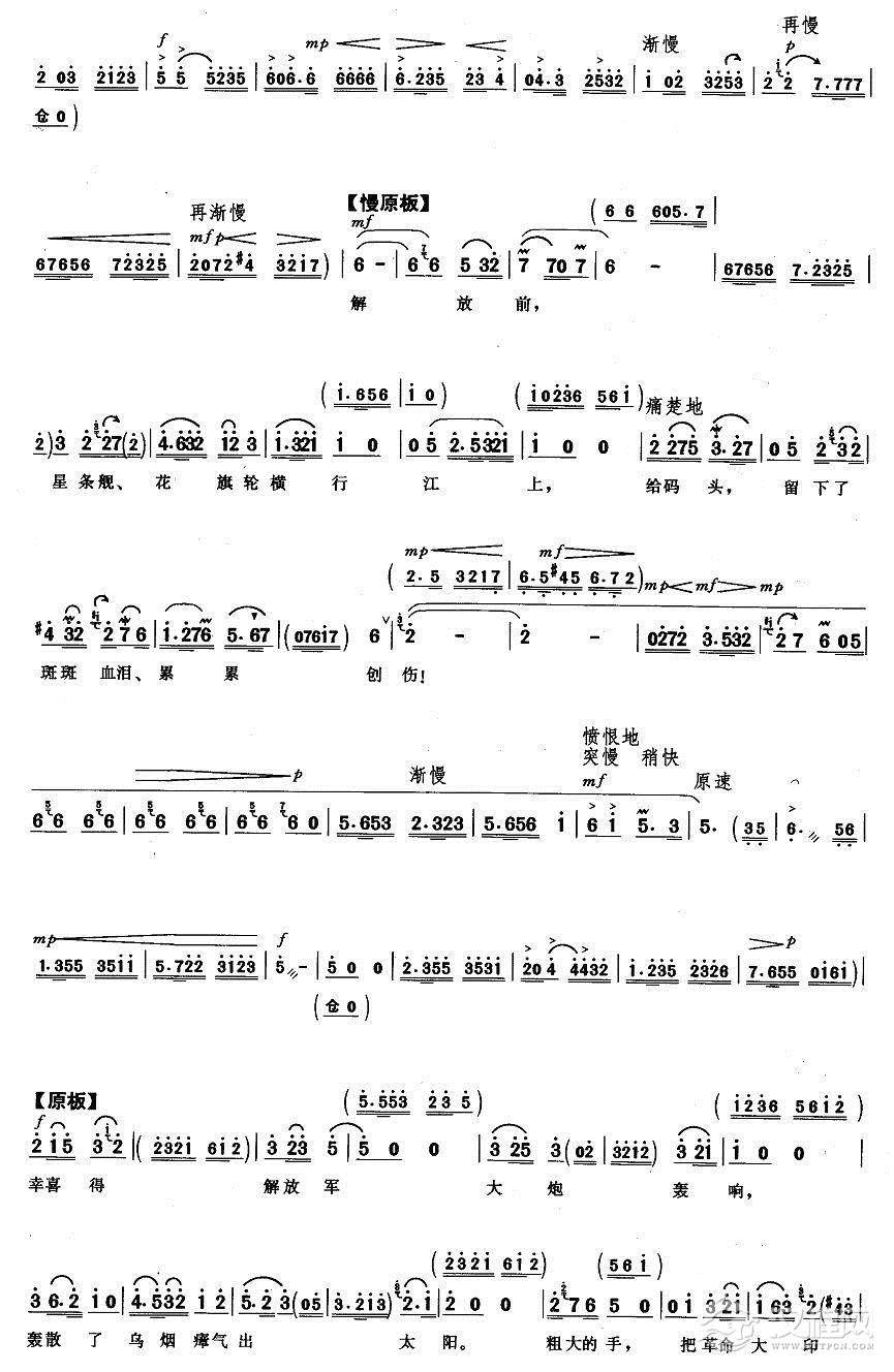戏曲曲谱让革命的红旗插遍四方(《龙江颂》江水英唱段)