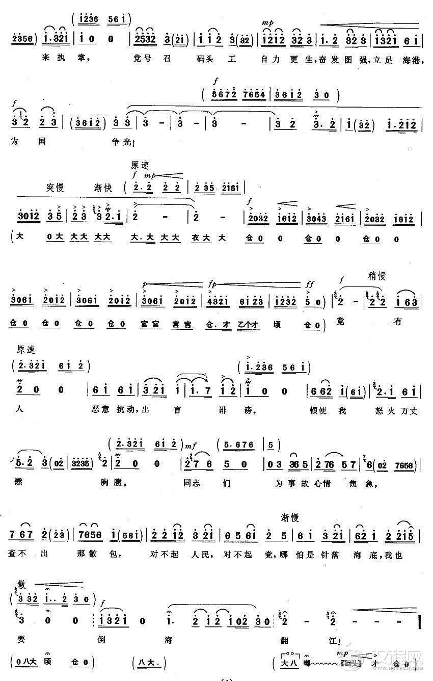 戏曲曲谱坚决战斗在海港(《海港》韩小强唱段)