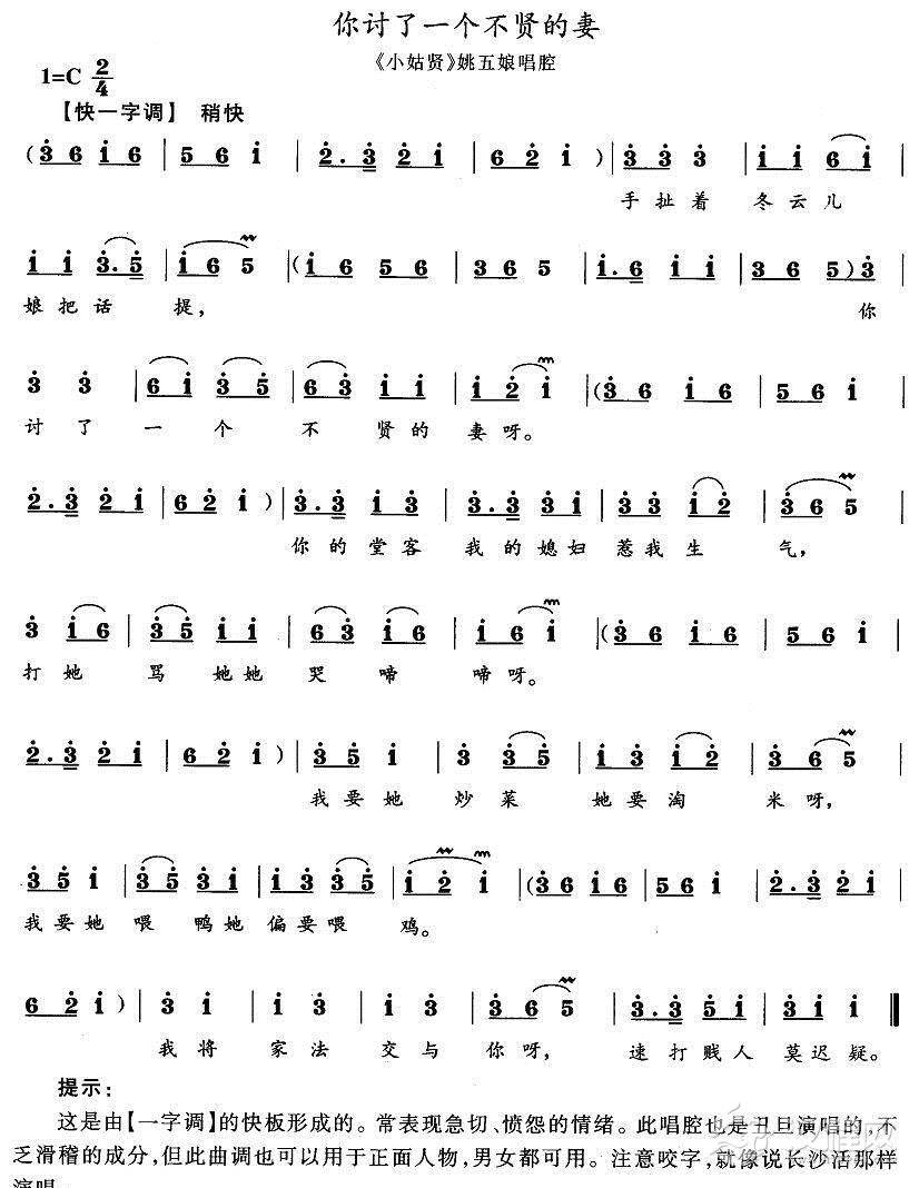 戏曲曲谱婆婆暂息雷霆怒(《小姑贤》梁氏唱段)