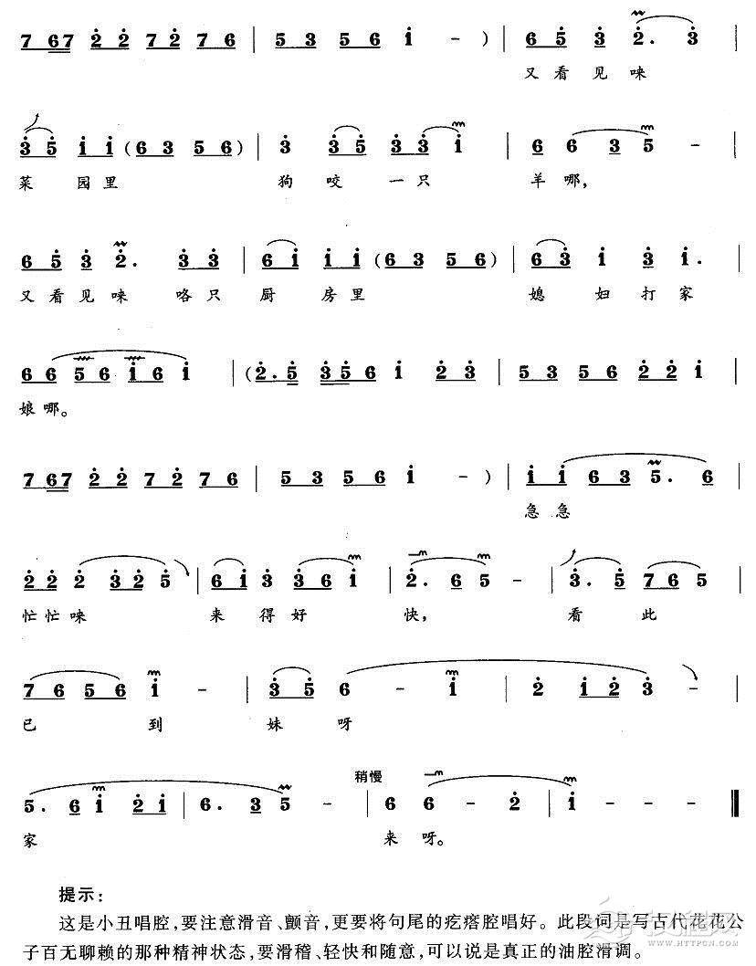 戏曲曲谱对花(《打猪草》陶金花、金小毛唱段,精简版)
