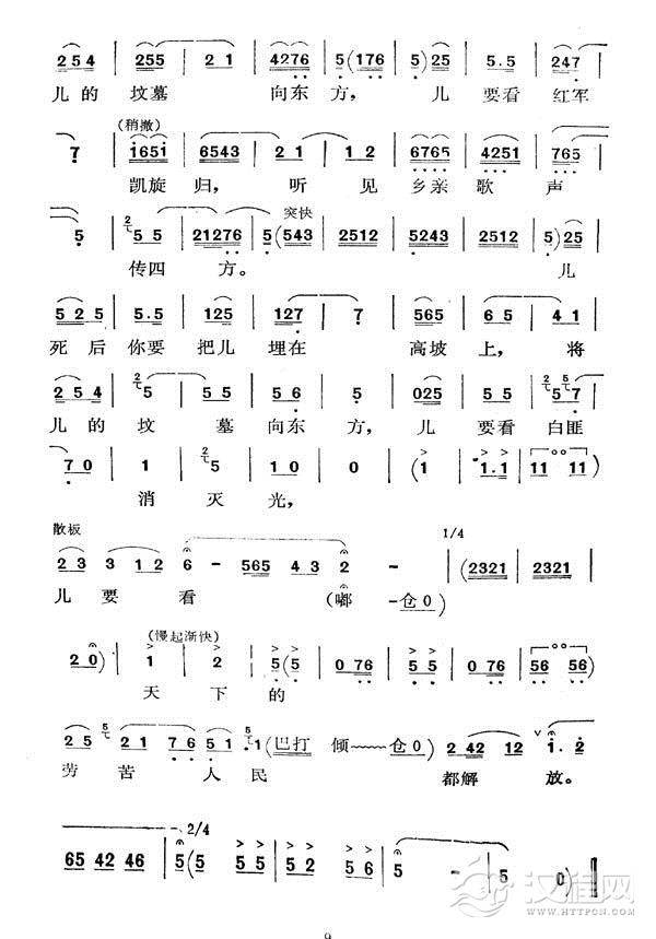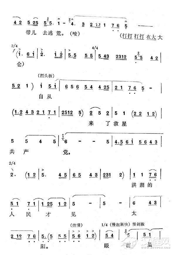 戏曲曲谱万里长江波浪翻(京剧“红灯记”唱段)