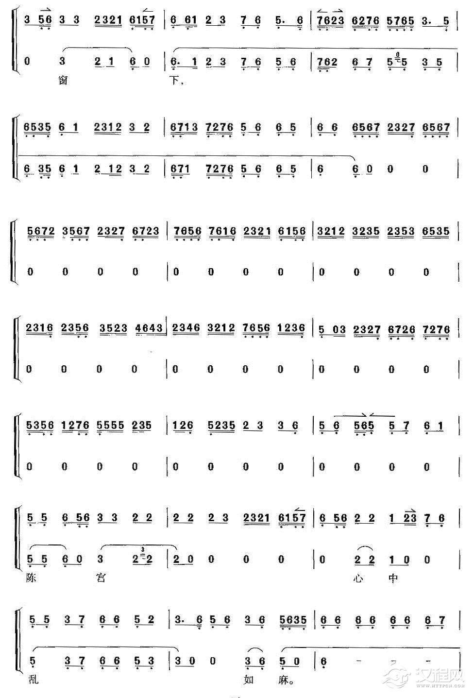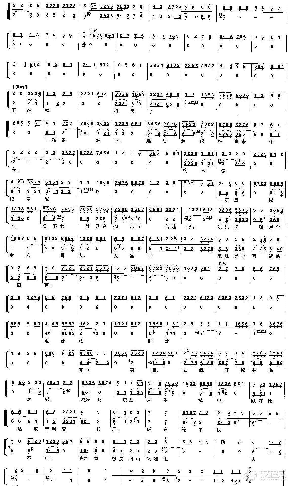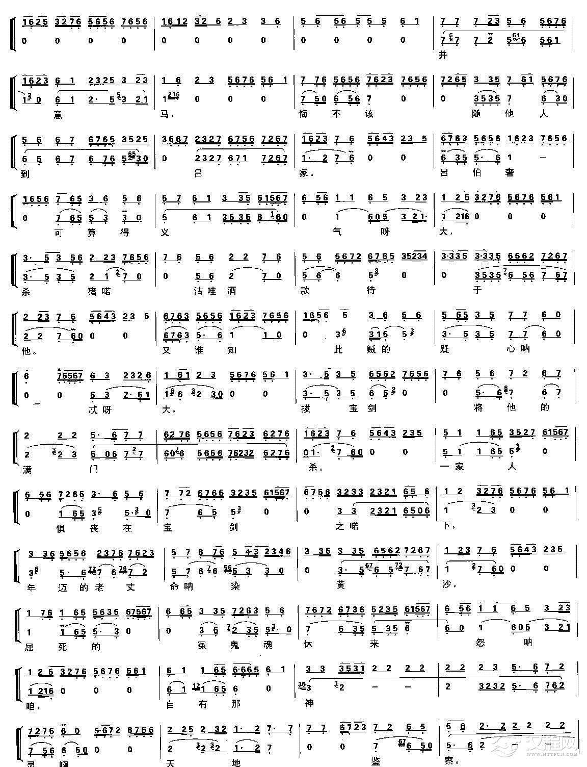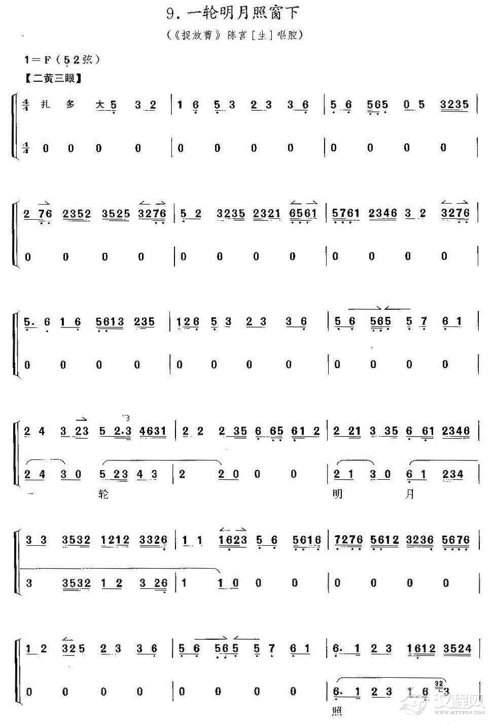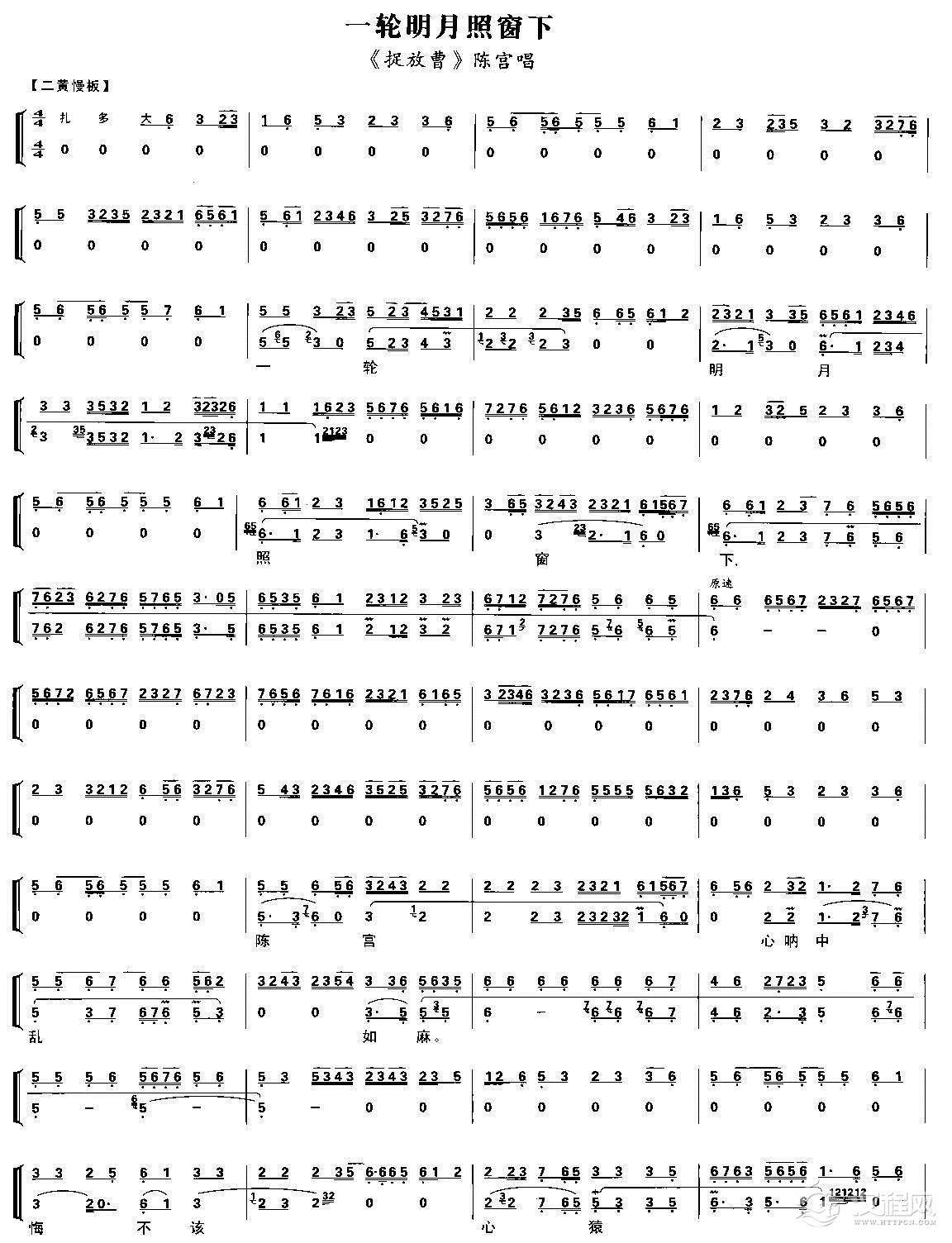 戏曲曲谱一轮明月照窗前(《文昭关》伍员唱段、琴谱)