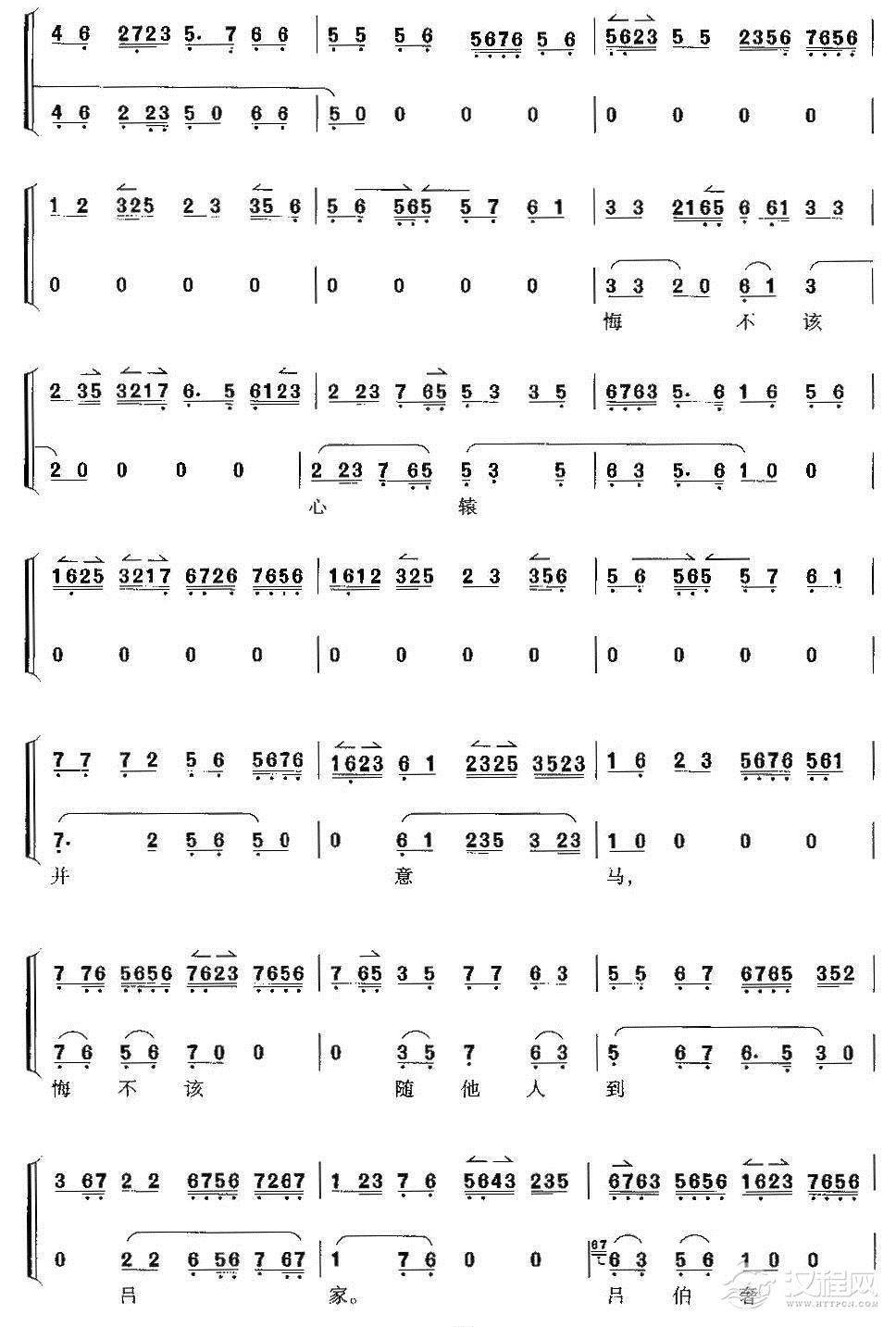 戏曲曲谱蝶恋花(戏歌)