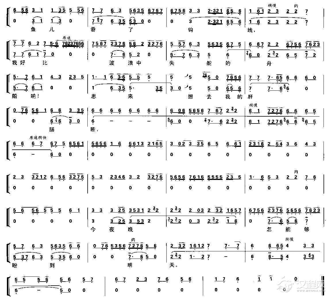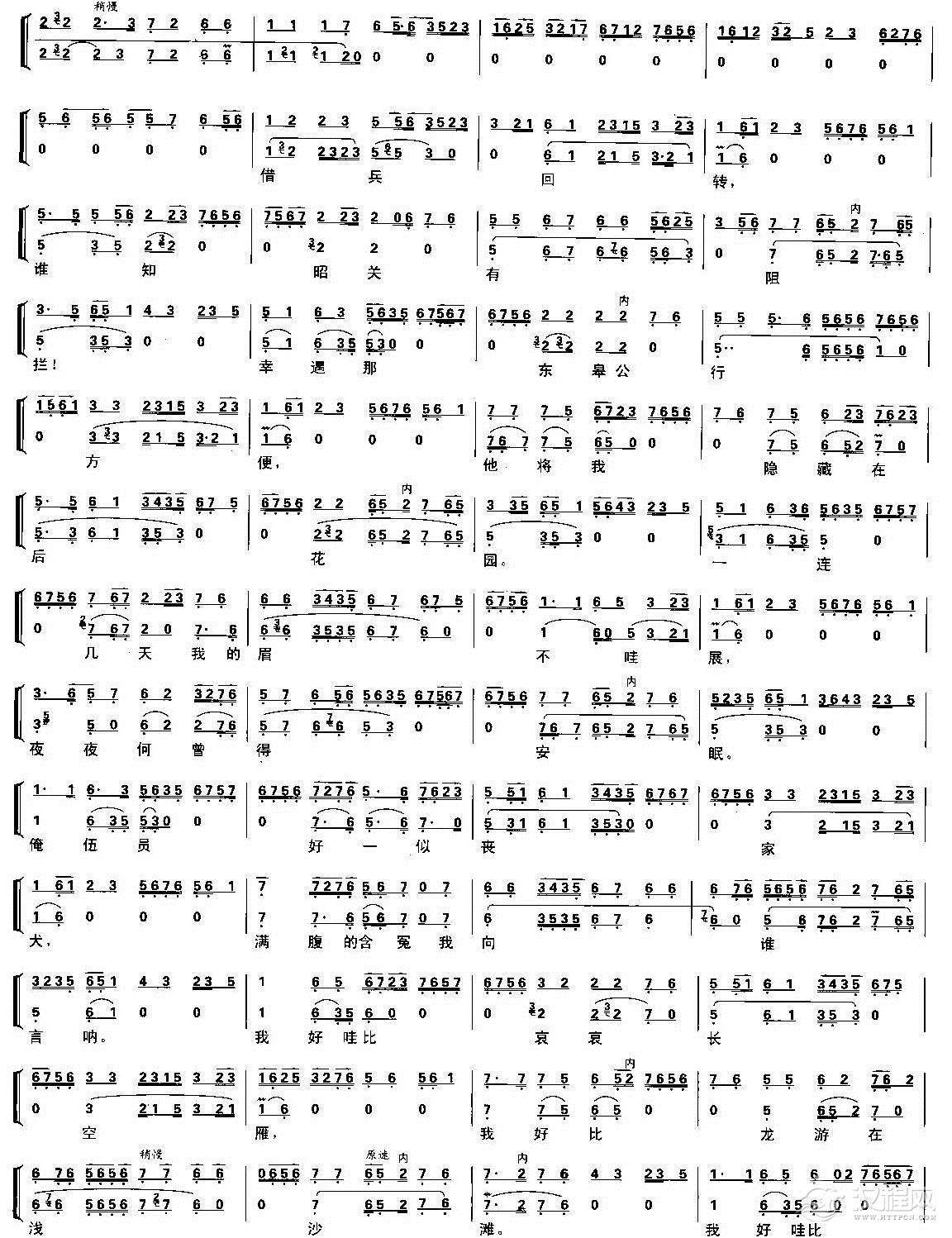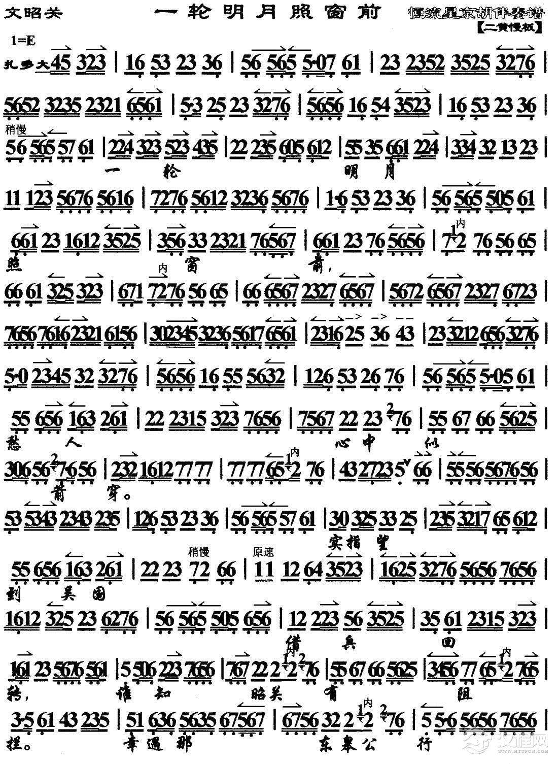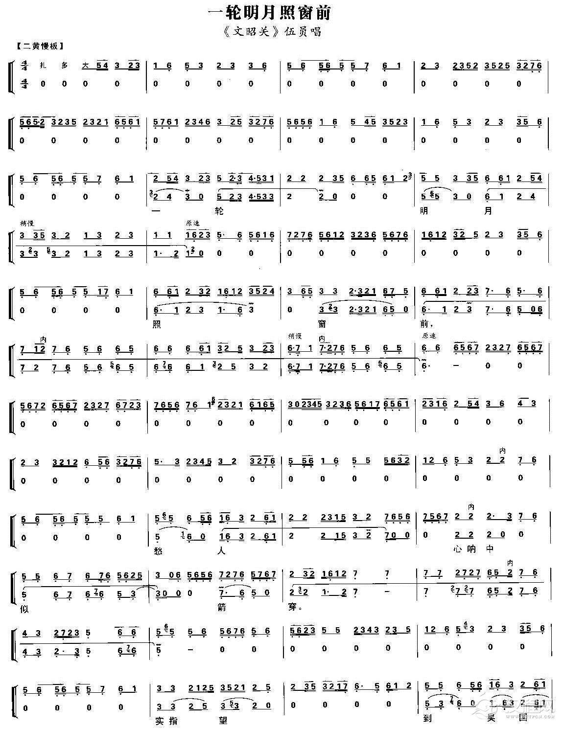 戏曲曲谱一轮明月照窗下(《捉放曹》陈宫唱段、琴谱)