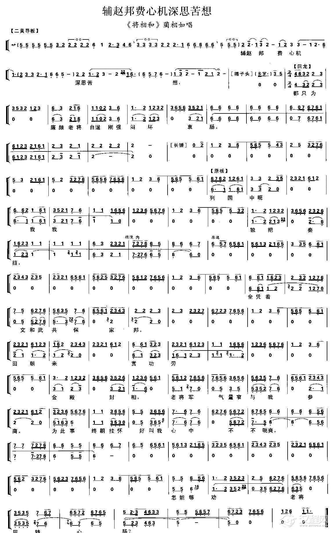 戏曲曲谱恨平王无能乱楚宫(《文昭关》伍员唱段、琴谱)