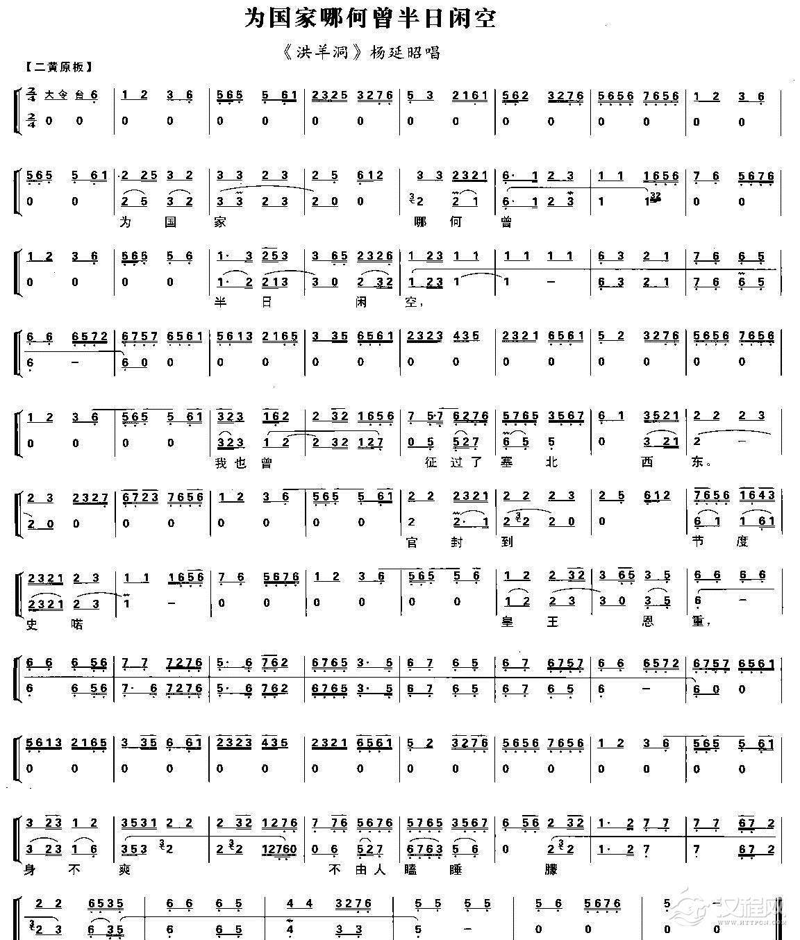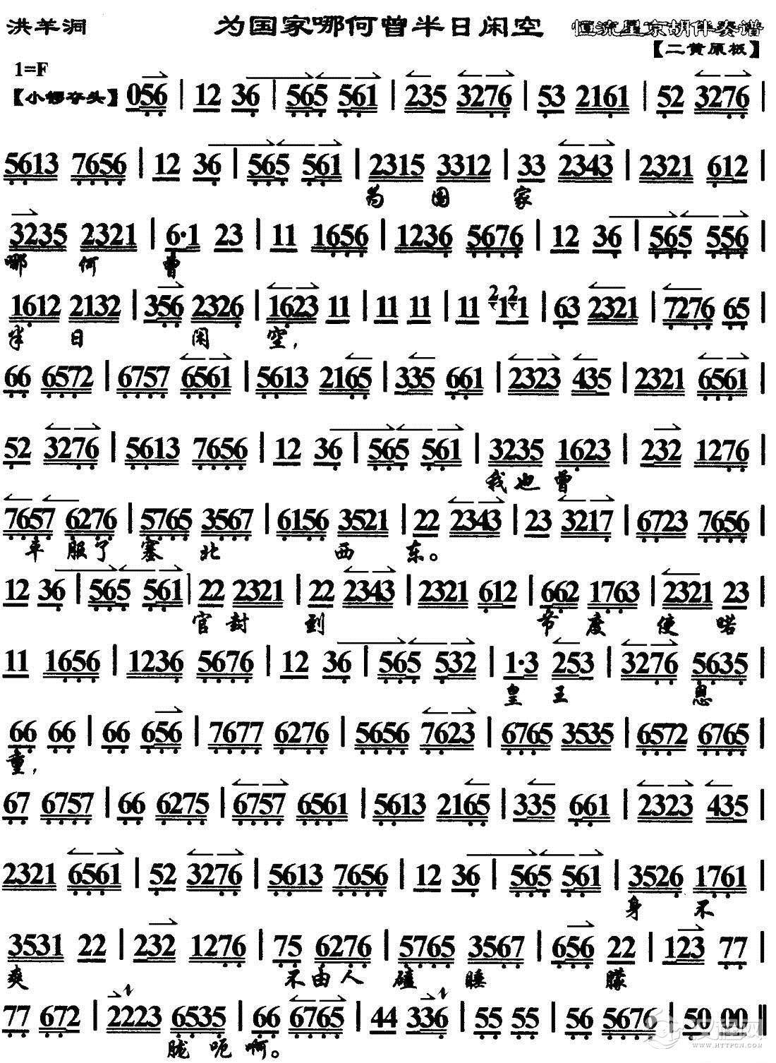 戏曲曲谱龙车凤辇进皇城(《打龙袍》李太后唱段、带伴奏谱)