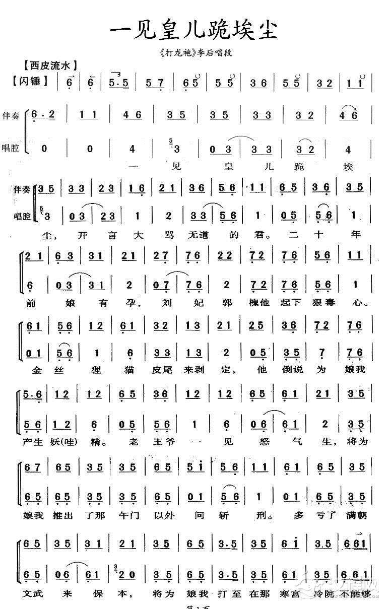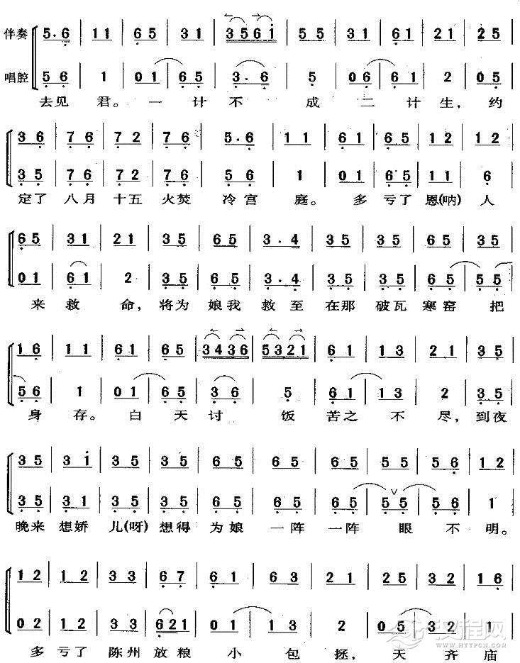 戏曲曲谱对着了南天门深施一礼(《天丝绢》唱段)
