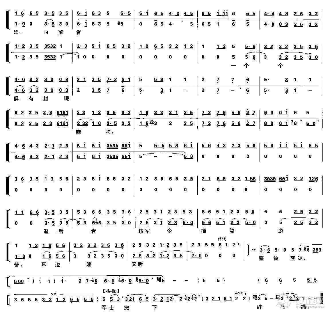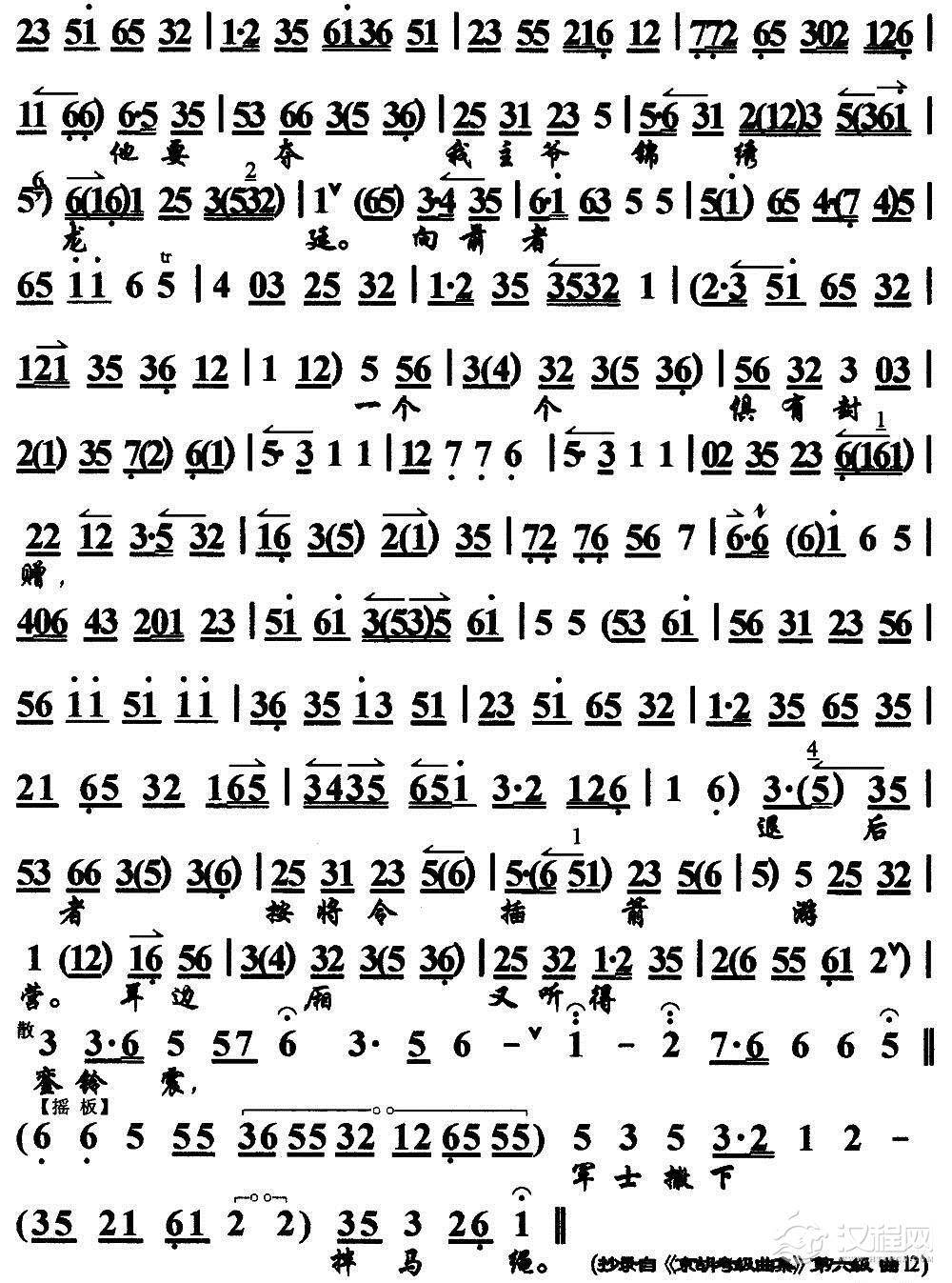 戏曲曲谱将酒宴摆在聚义厅上(《盗御马》窦尔墩唱段、琴谱)