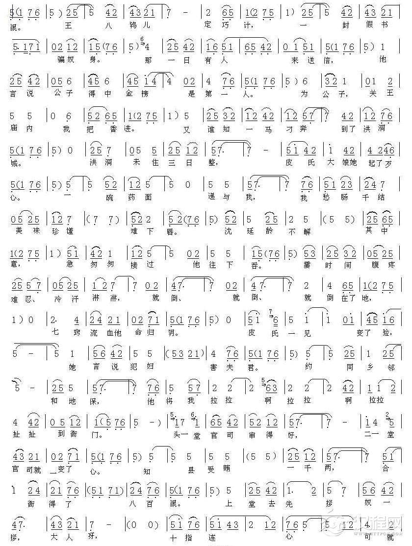 戏曲曲谱[秦腔]有窦娥在小房焦急等待(《窦娥冤·调戏》窦娥唱段)