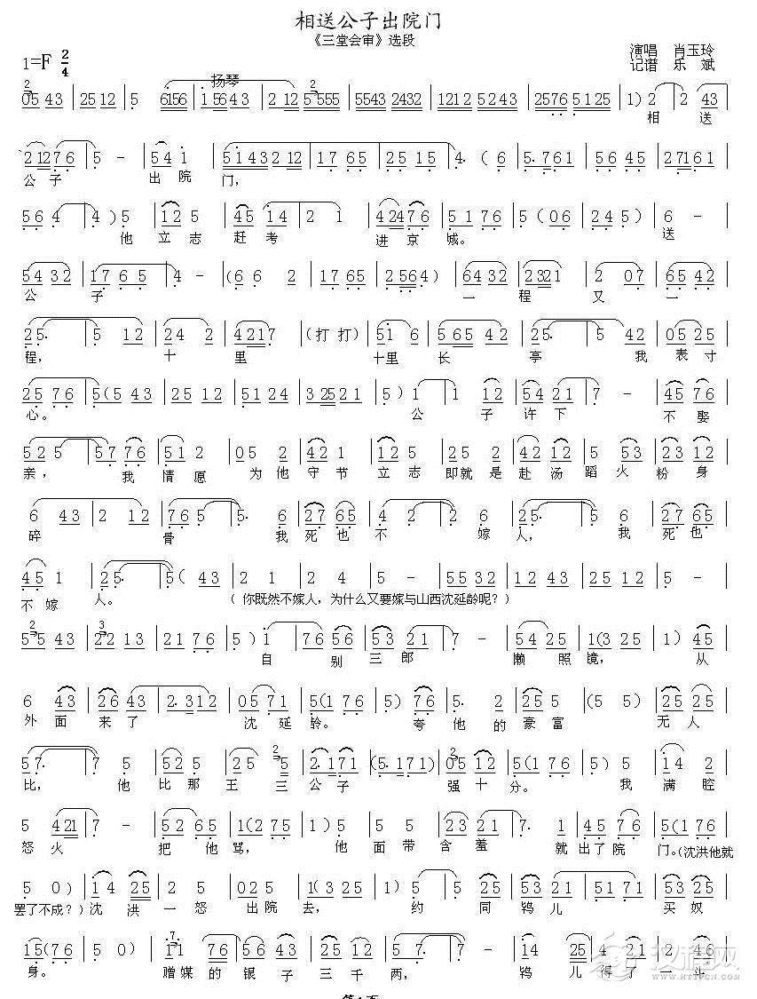 戏曲曲谱娘子不必太烈性(《搜孤救孤》程婴唱段、琴谱)