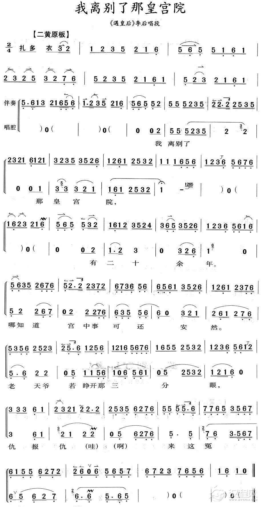 戏曲曲谱龙车凤辇进皇城(《打龙袍》李太后唱段、带伴奏谱)