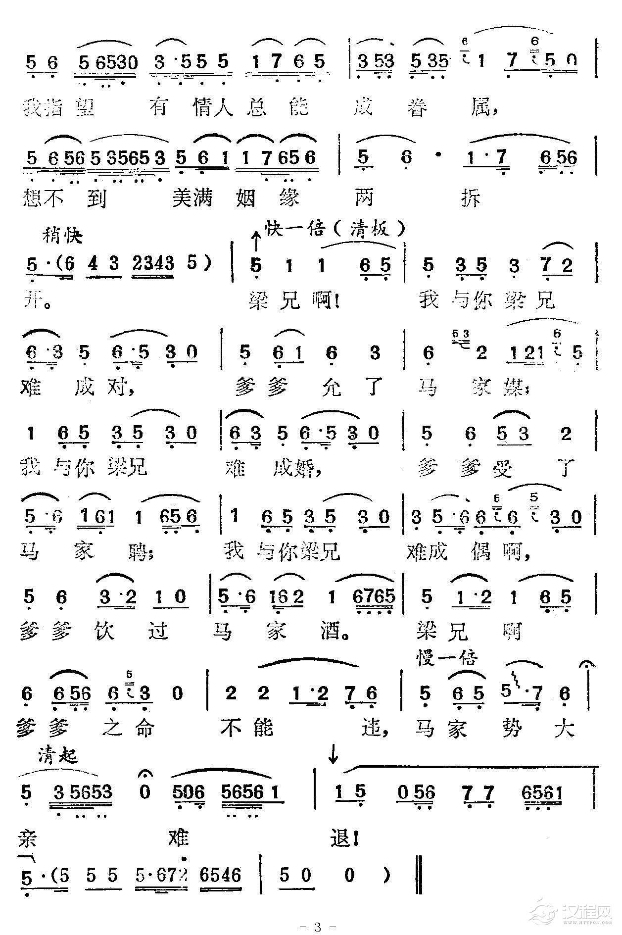 戏曲曲谱霎时成为渡郎人(《李三娘》三娘唱段)