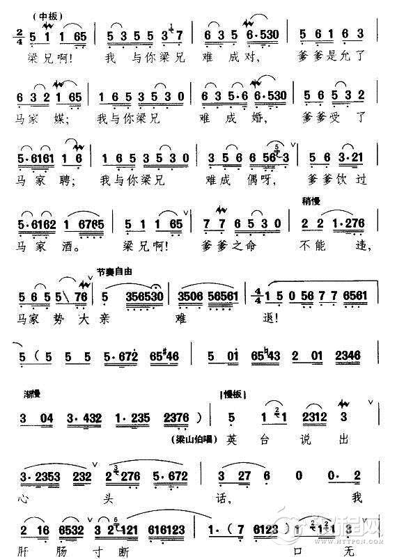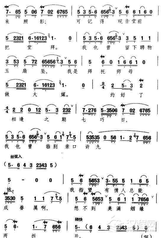 戏曲曲谱我家有个小九妹(《梁山伯与祝英台》祝英台唱段)
