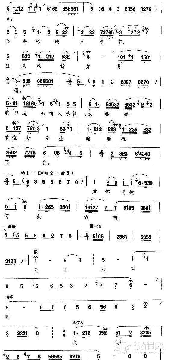 戏曲曲谱绵绵古道连天上(《蝶恋花》杨开慧唱段)