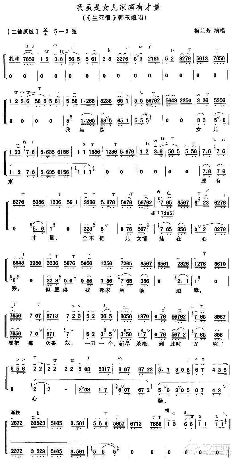 戏曲曲谱一曲弦歌情无限(《杜十娘》杜十娘唱段、琴谱)