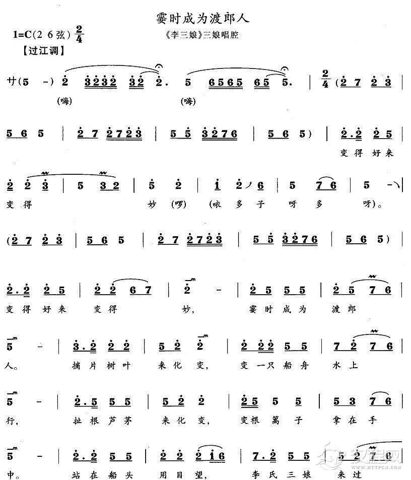 戏曲曲谱手攀竹竿上了船(《桃源洞》唱腔)
