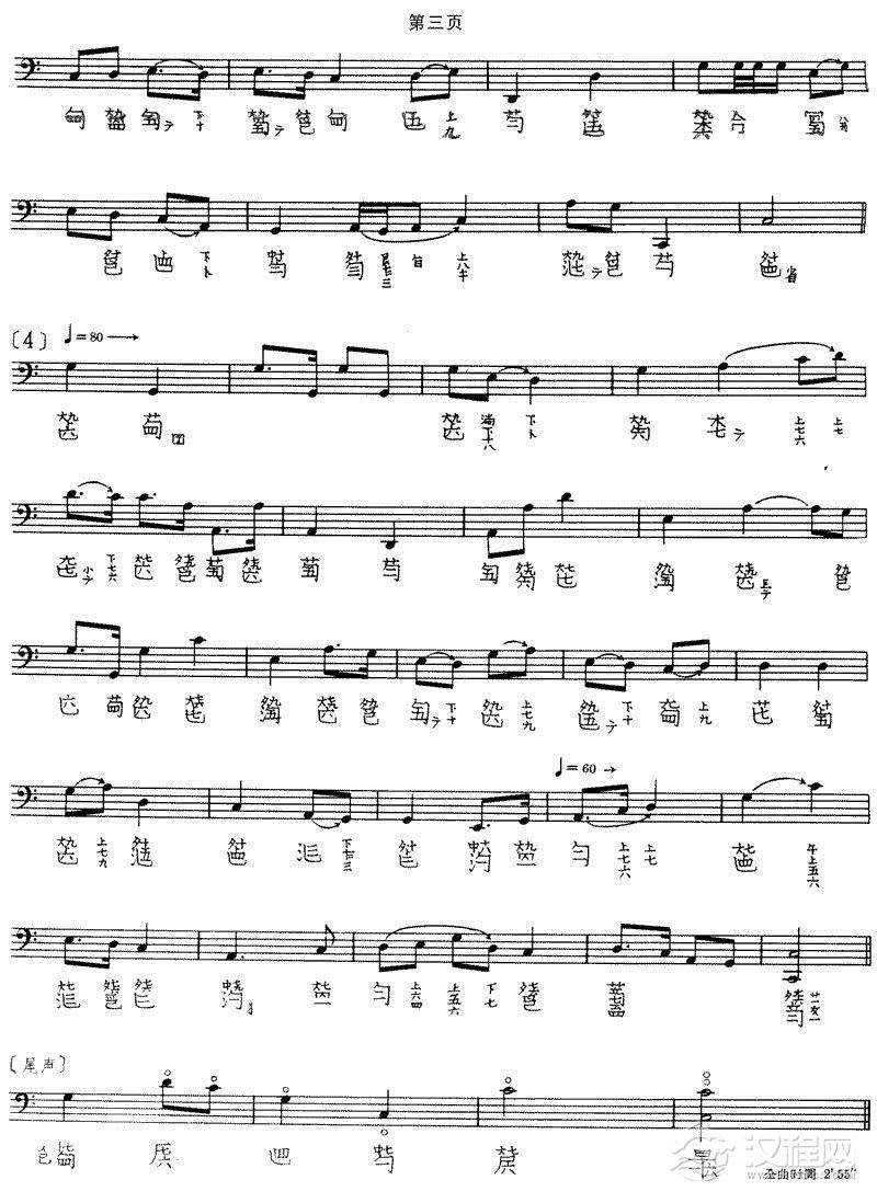 渔歌(查阜西演奏版、古琴谱)