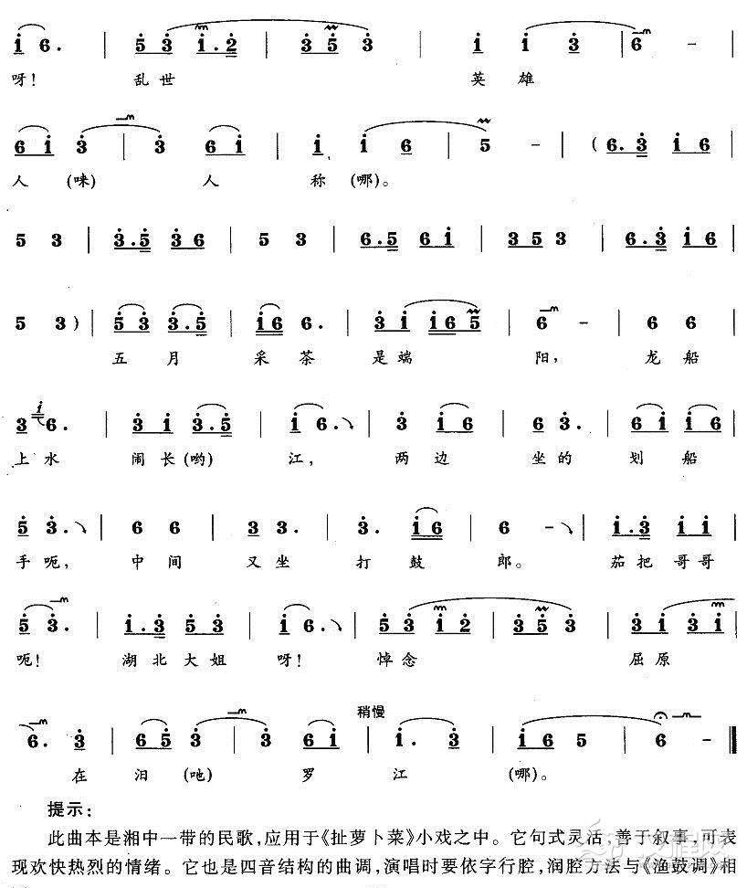 戏曲曲谱手攀竹竿上了船(《桃源洞》唱腔)