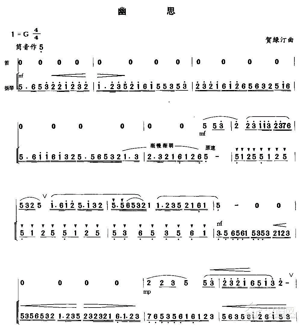 五女传说(笛子独奏扬琴伴奏谱)