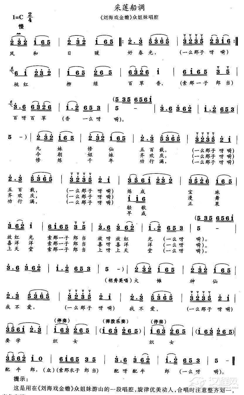 戏曲曲谱正月采茶是新年(《扯萝卜菜》茄把和湖北大姐唱段)