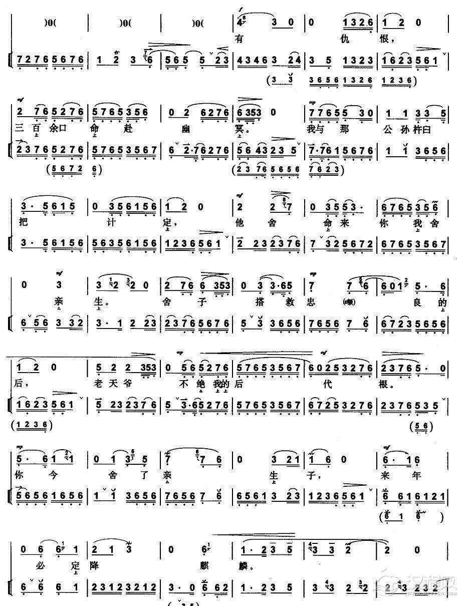 戏曲曲谱捉放曹(陈宫唱段、带伴奏谱)