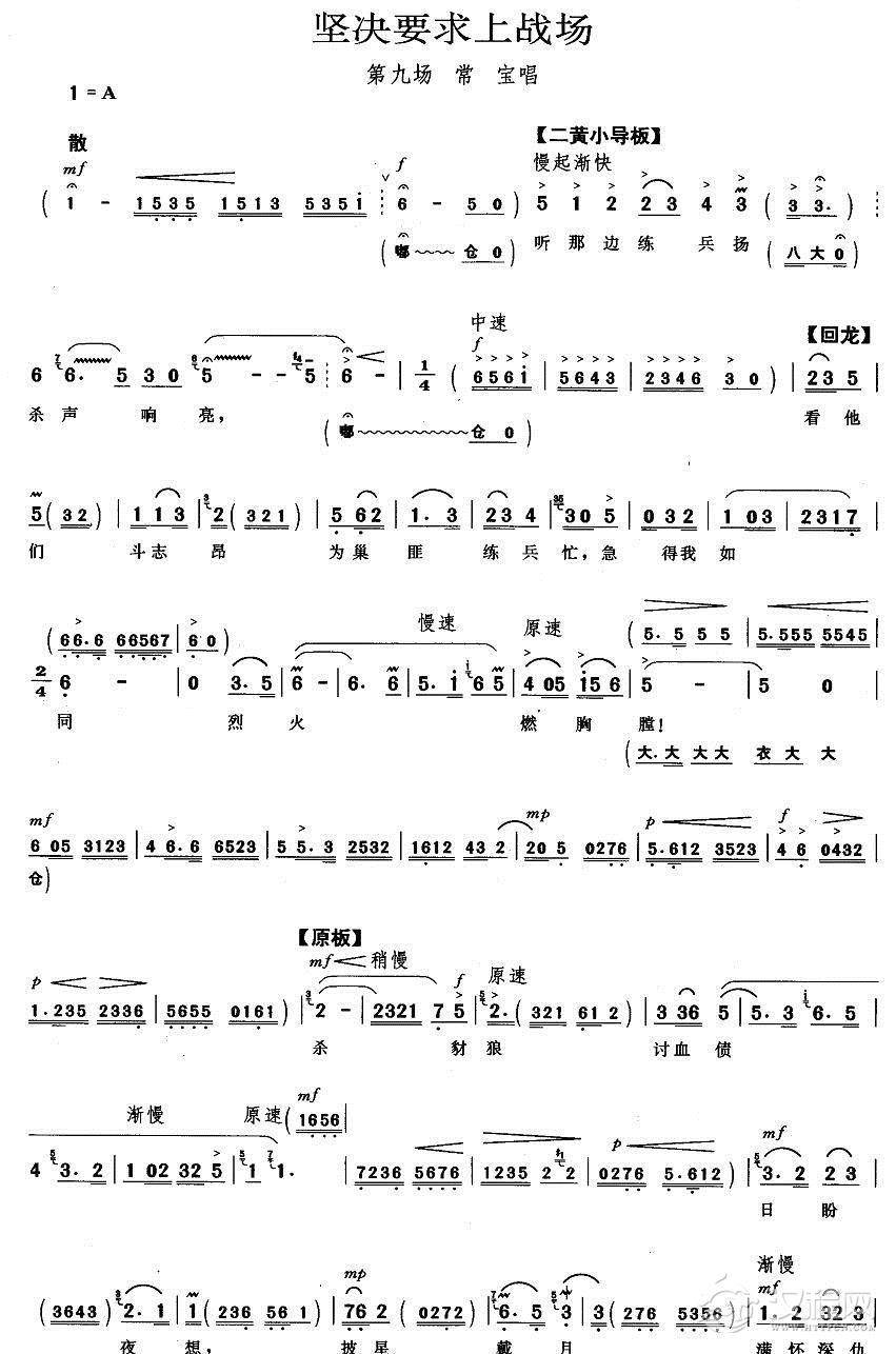 戏曲曲谱叹杨家投宋主心血用尽(《洪羊洞》杨延昭唱段、琴谱)