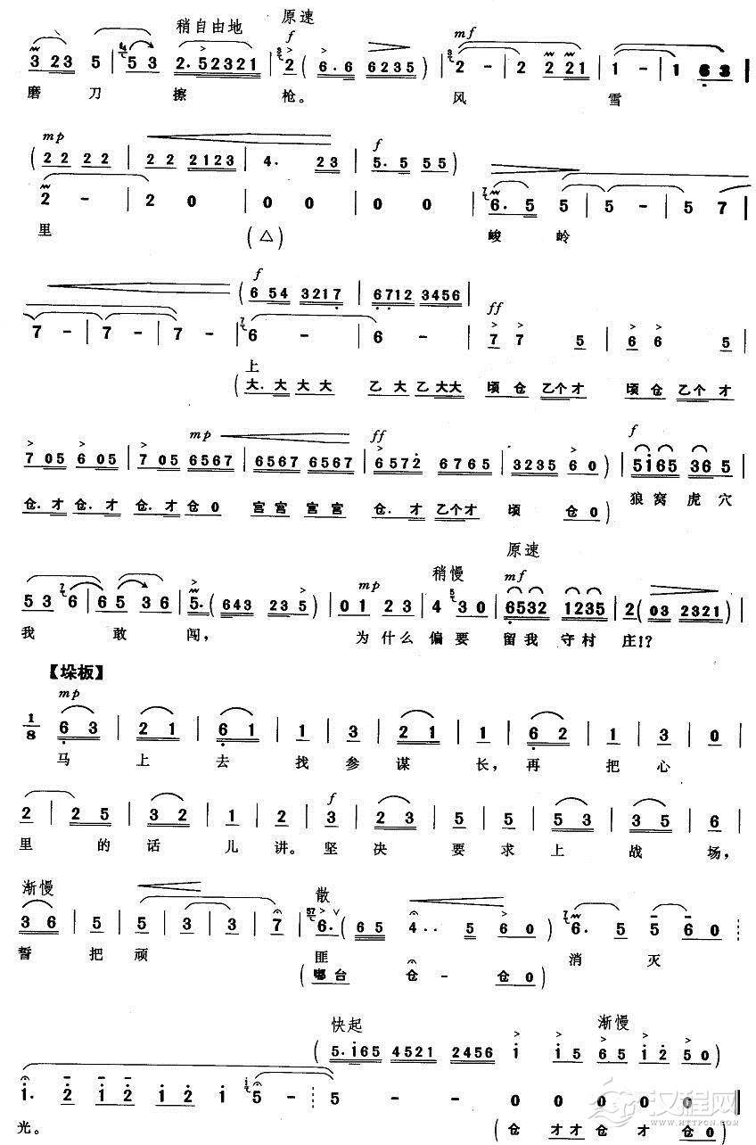戏曲曲谱自己的队伍来到面前(《智取威虎山》李勇奇唱段)
