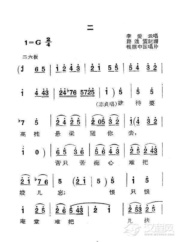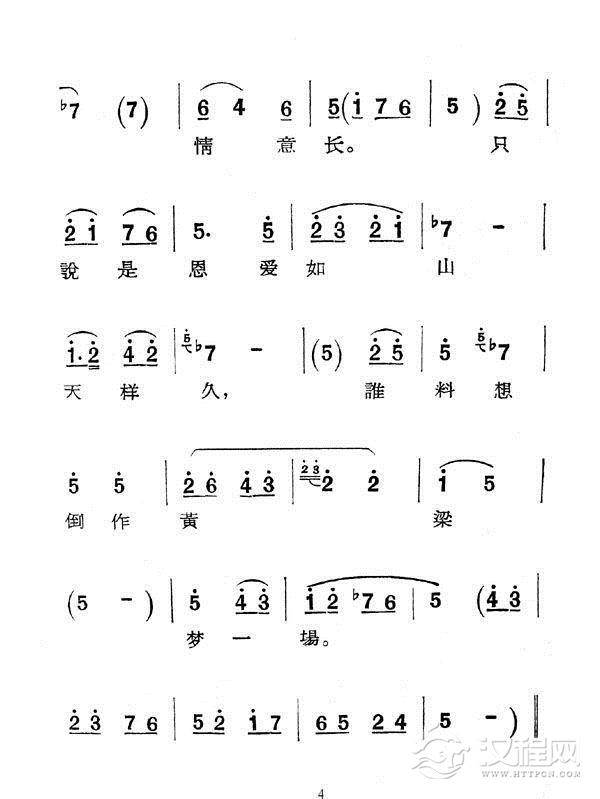 戏曲曲谱单表梅龙镇(新潮黄梅调《江山美人》曲三)