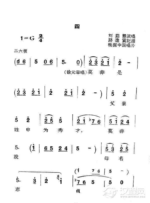 戏曲曲谱李凤妹妹多孤伶(新潮黄梅调《江山美人》曲十五)