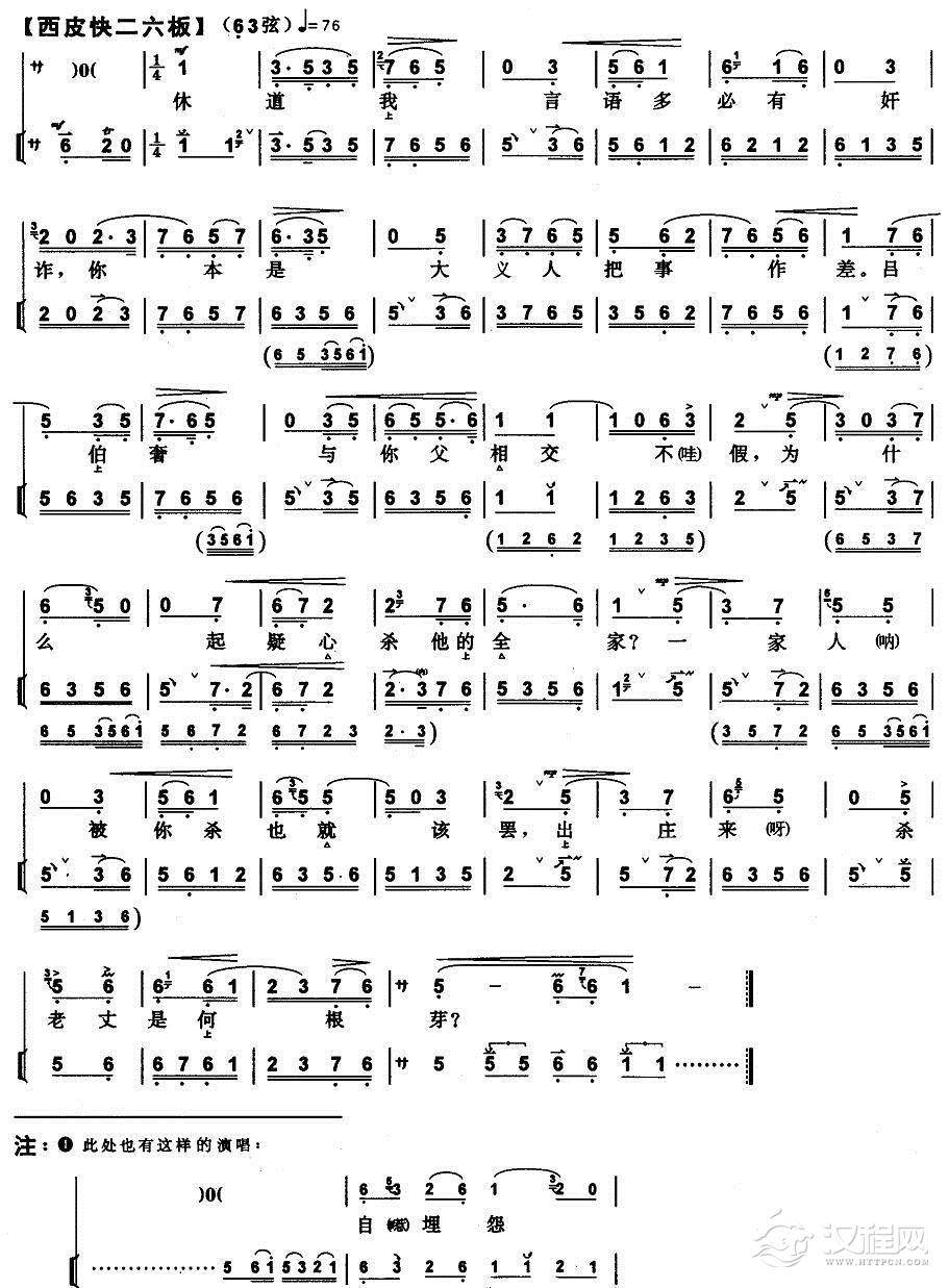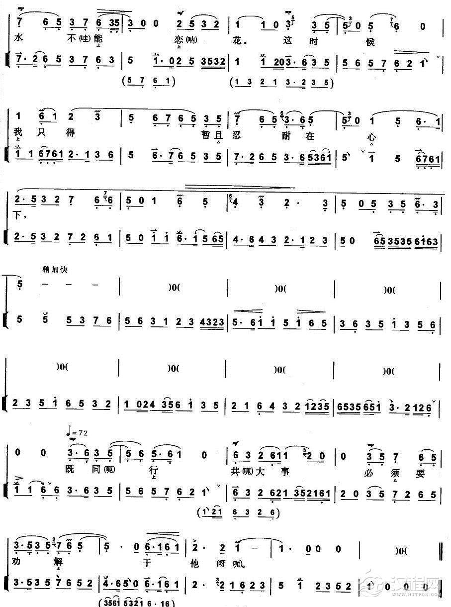 戏曲曲谱[楚剧]一颗热心冷吹风(《双教子》片段、二胡伴奏谱)