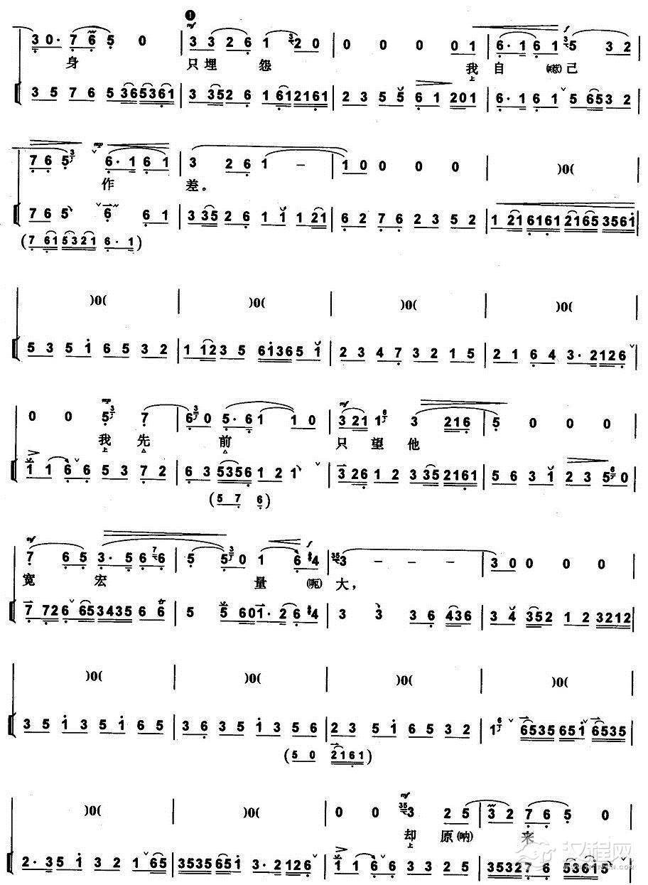 戏曲曲谱我面前缺少个知音的人(《空城计》诸葛亮唱段、带伴奏谱)