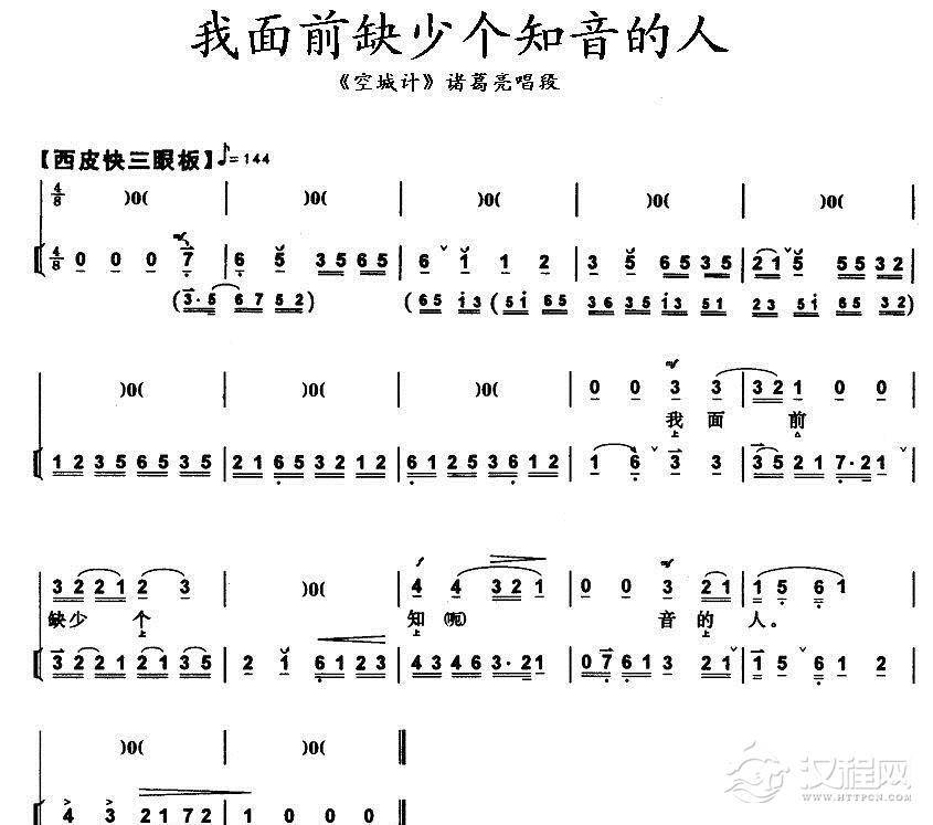 戏曲曲谱我本是卧龙岗上散淡的人(《空城计》诸葛亮唱段、带伴奏谱)