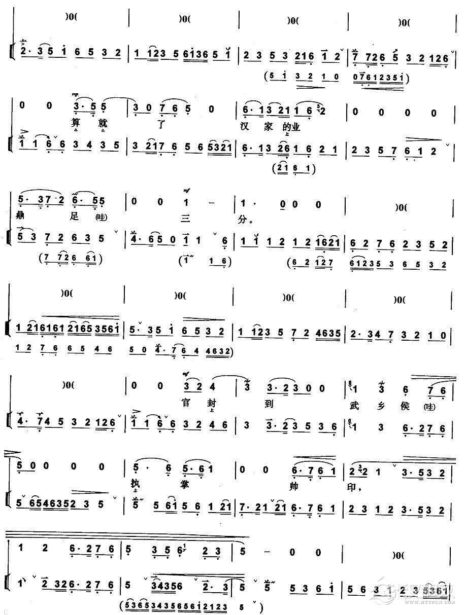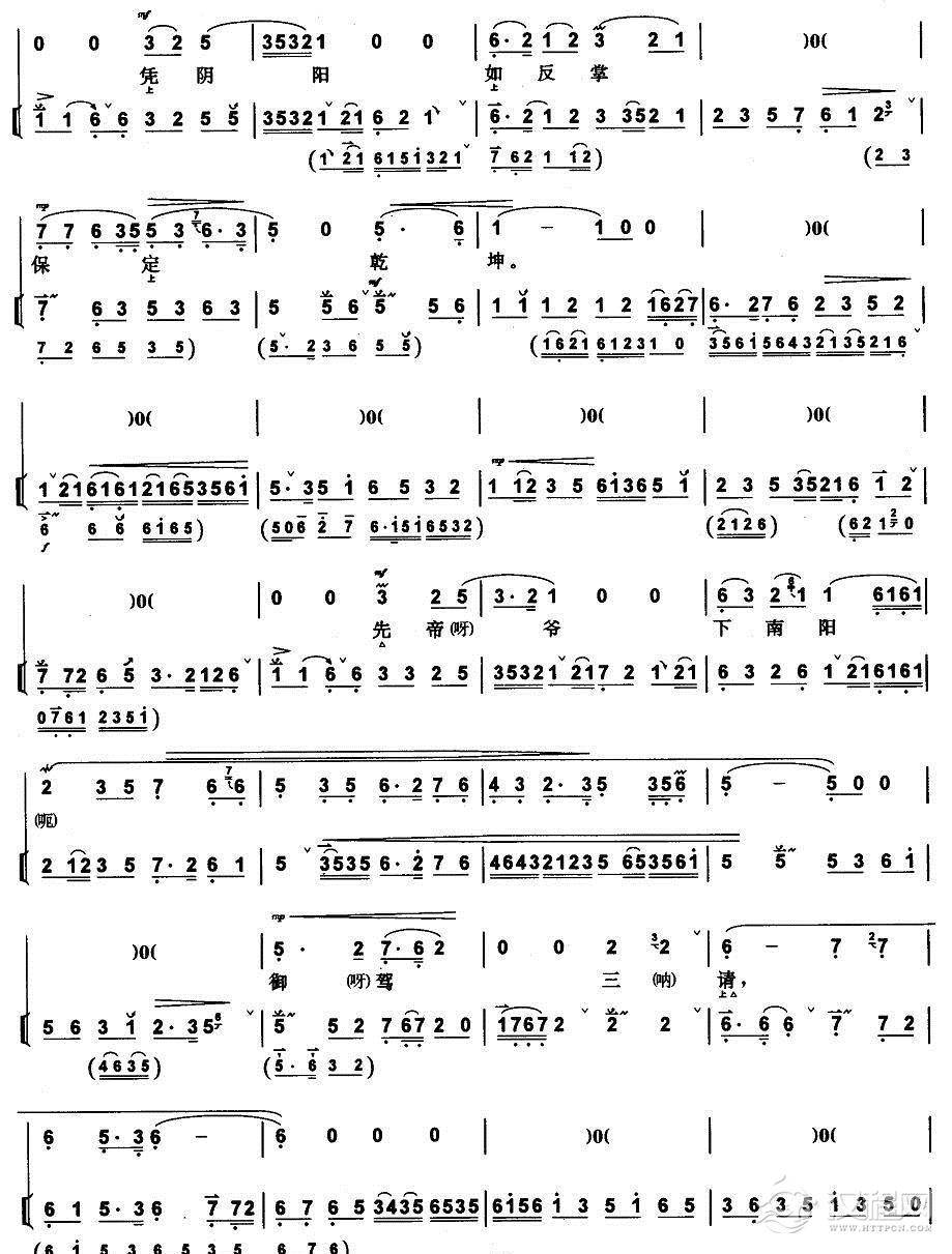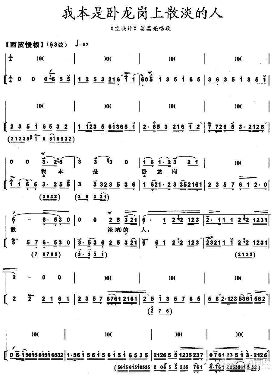 戏曲曲谱我面前缺少个知音的人(《空城计》诸葛亮唱段、带伴奏谱)