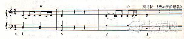 在欧洲古典作品中,常在音乐的最初陈述时仅用主、属两个和弦构成的和声进行。