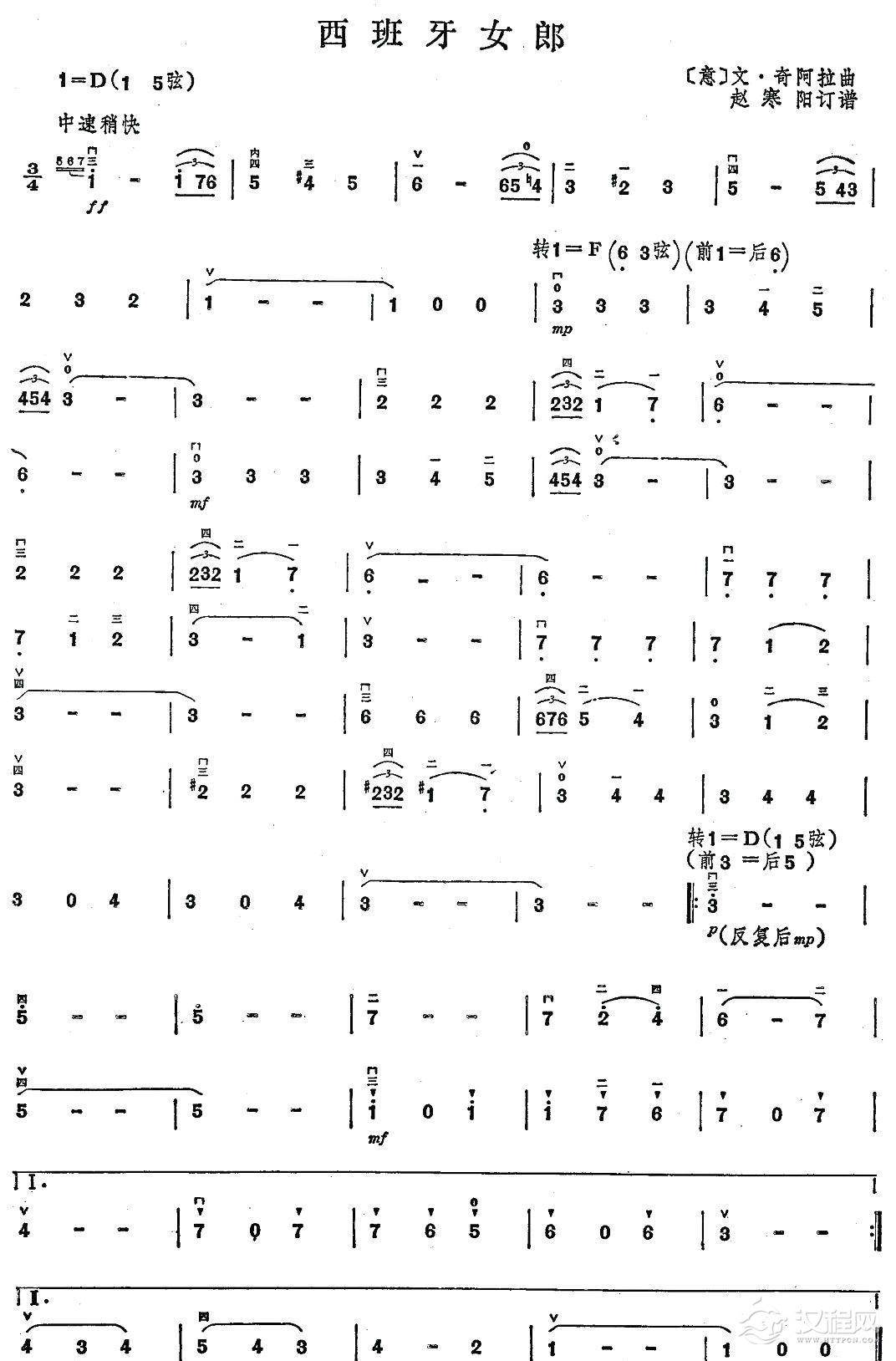 古筝谱《彩云追月》