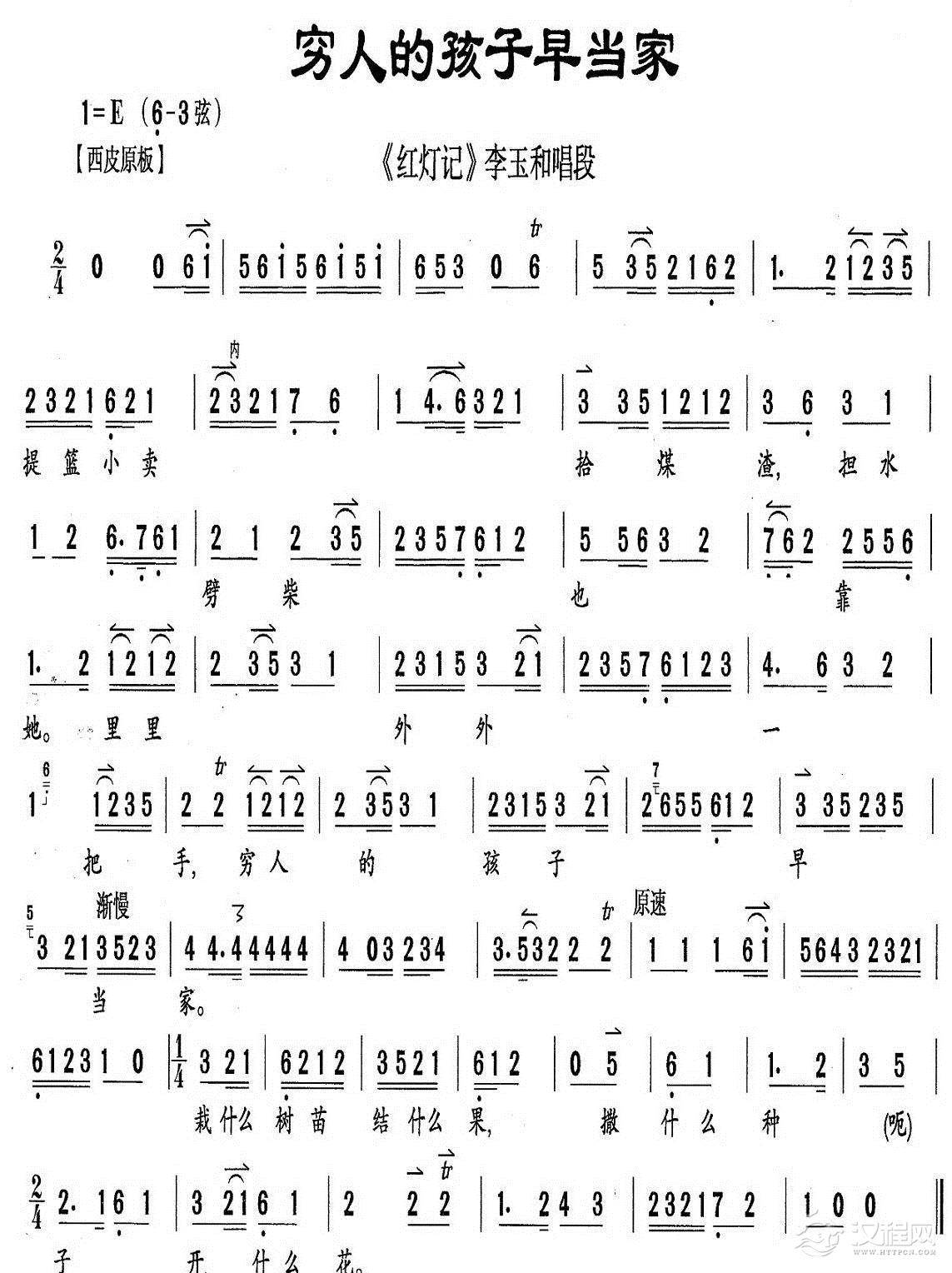 戏曲曲谱光辉照儿永向前(《红灯记》铁梅唱段、月琴伴奏谱)