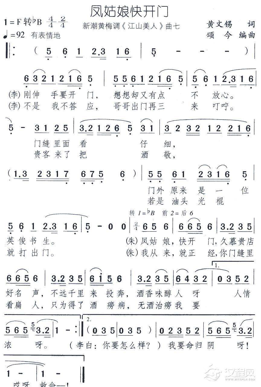 戏曲曲谱迎客(新潮黄梅调《江山美人》曲八)