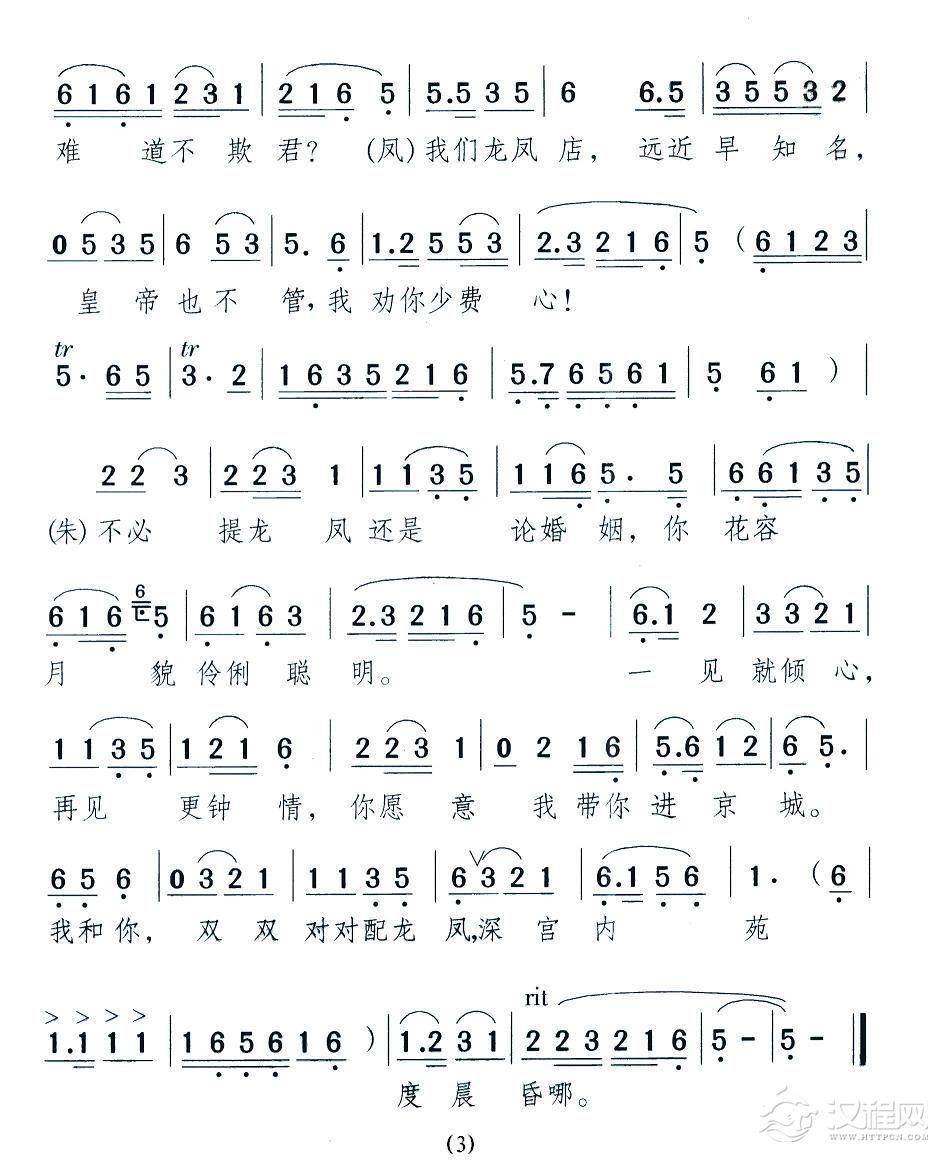 戏曲曲谱单表梅龙镇(新潮黄梅调《江山美人》曲三)